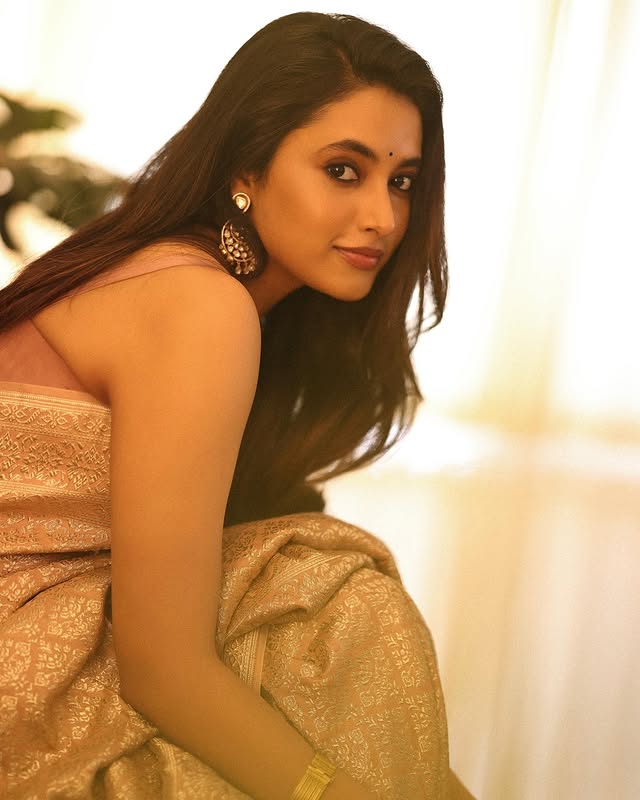 Priyanka Mohan exudes modern glamour in this stunning look, blending elegance with effortless confidence.