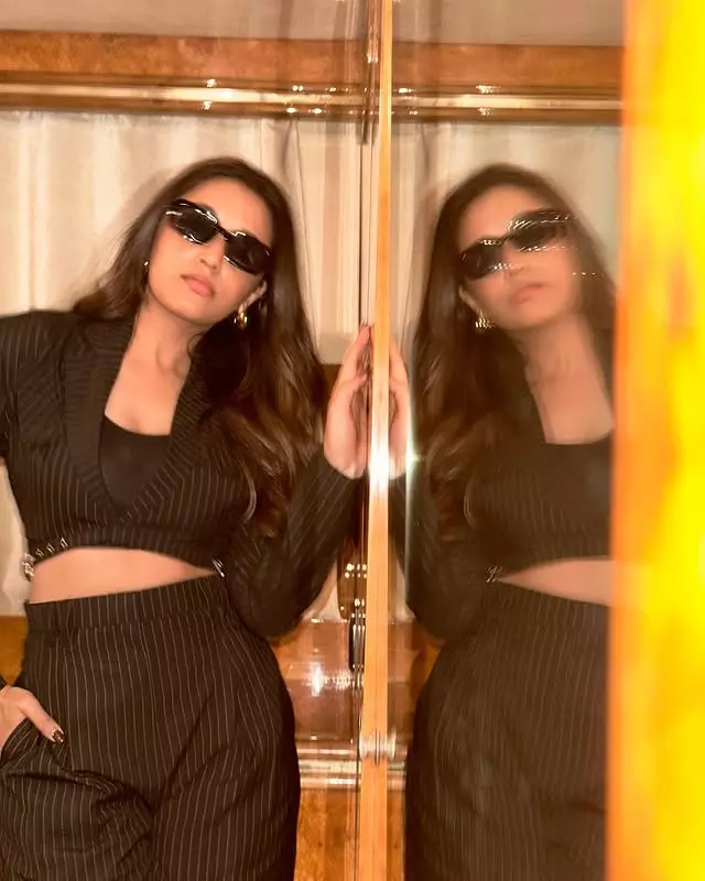 Priyanka Mohan exudes modern glamour in this stunning look, blending elegance with effortless confidence. The sleek black and blue outfit enhances her chic style, while her graceful pose and soft makeup highlight her natural beauty. Radiating sophistication, she perfectly captures the essence of contemporary charm. ✨💙