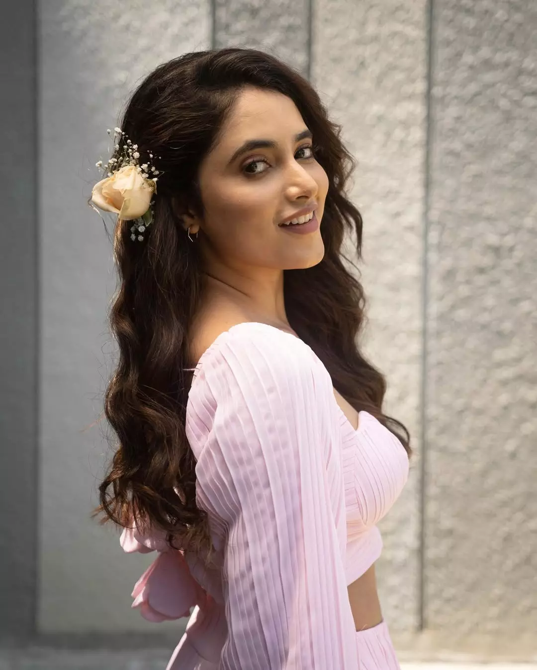 In her latest photodump, Priyanka Mohan radiates pure serenity in a soft pink pleated outfit, exuding elegance and feminine charm. With a delicate rose tucked in her hair and eyes closed to the sun, she captures a moment of calm a gentle contrast to the high-voltage energy she's bringing on-screen.