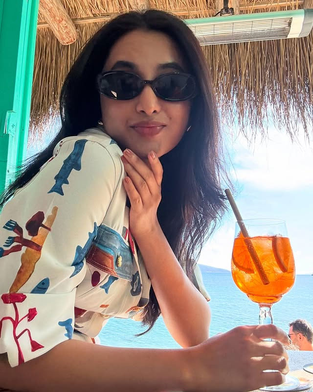 Priyanka Mohan chose adorable dresses and it's proven in her recent vacation pics. Her recent post shows her enjoying a peaceful day on a boat in Turkey. She wears a short white playsuit with colorful prints. The dress has red, blue and yellow patterns.