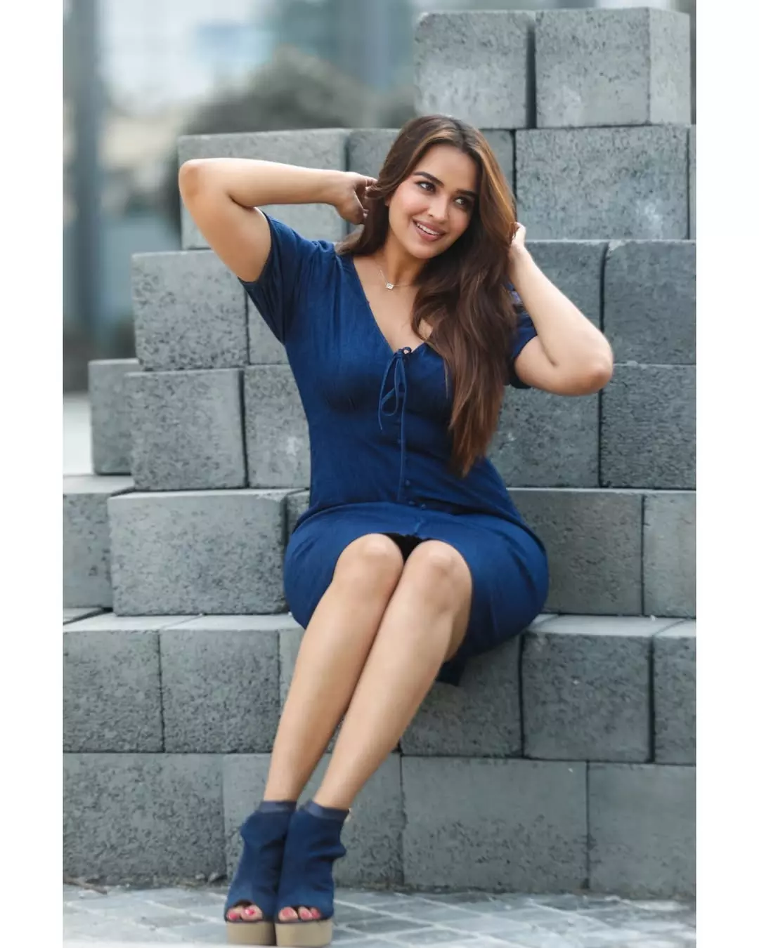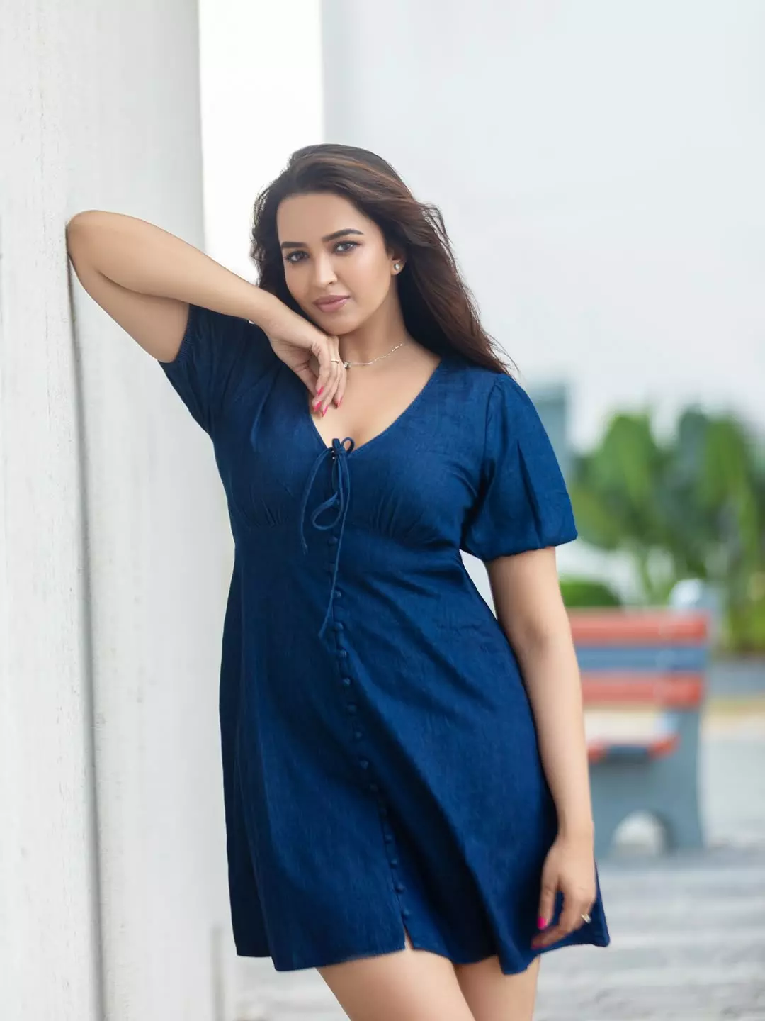 Pujita Ponnada shared a new picture on Instagram that has captured attention. She wore a simple denim-style dress and posed with a warm smile.