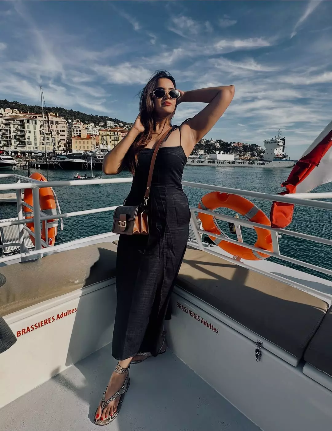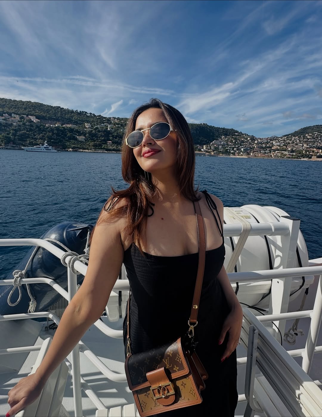 In her caption, Pujita wrote that this cruise from Nice, gliding along the coastline and covering the unique towns around it, was one of the best parts of her trip. She mentioned that looking at the breathtaking scenery made it a highlight of her travel. Pujita looked elegant in a black sleeveless dress, paired with stylish sunglasses and a brown shoulder bag.