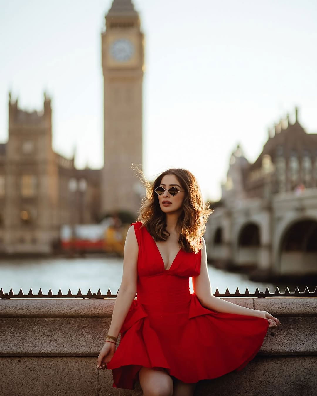 What’s nice is how relaxed she looks, like she’s not even trying to pose but still ends up looking like a postcard. The color of the outfit just pops, bold but playful. Her hair falls loose, the sand under her feet, a little smile that says she’s exactly where she wants to be. You can almost feel the warm air through the photo.