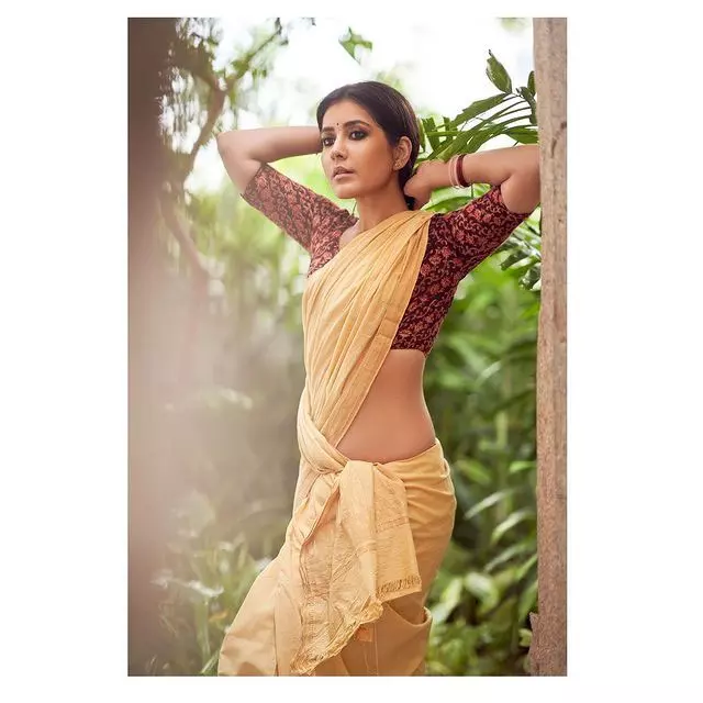 Raashii Khanna shared a new post on Instagram. She looked graceful in a saree. She added a heartfelt caption to describe her feelings. Her caption read, “The only affair where I fall in love every single time.. #telusukada ❤️ #promotions.”