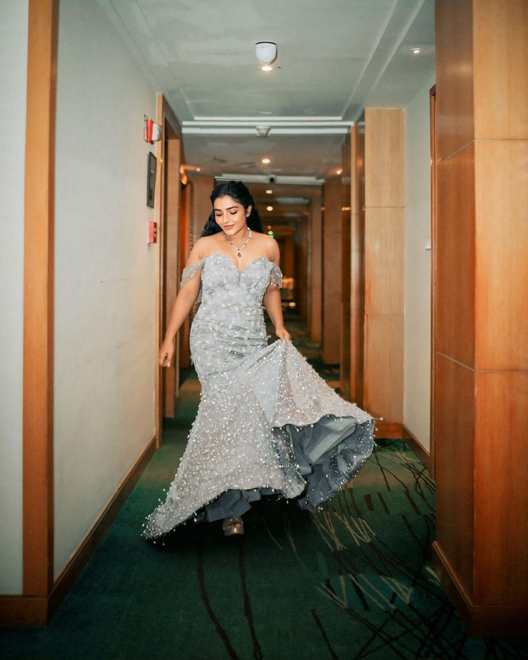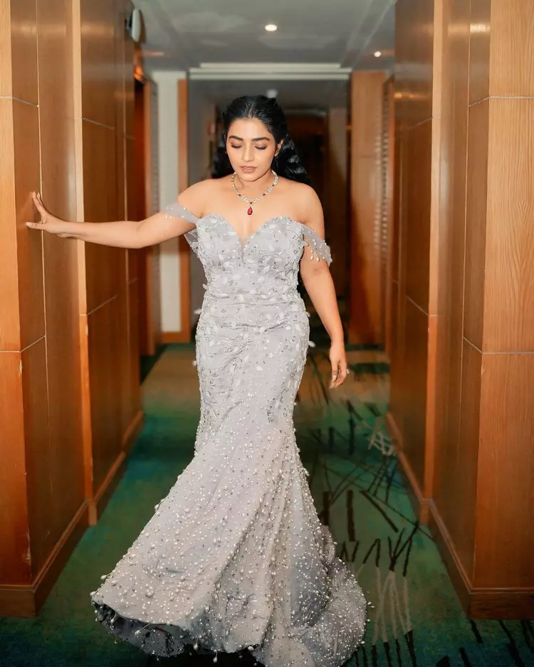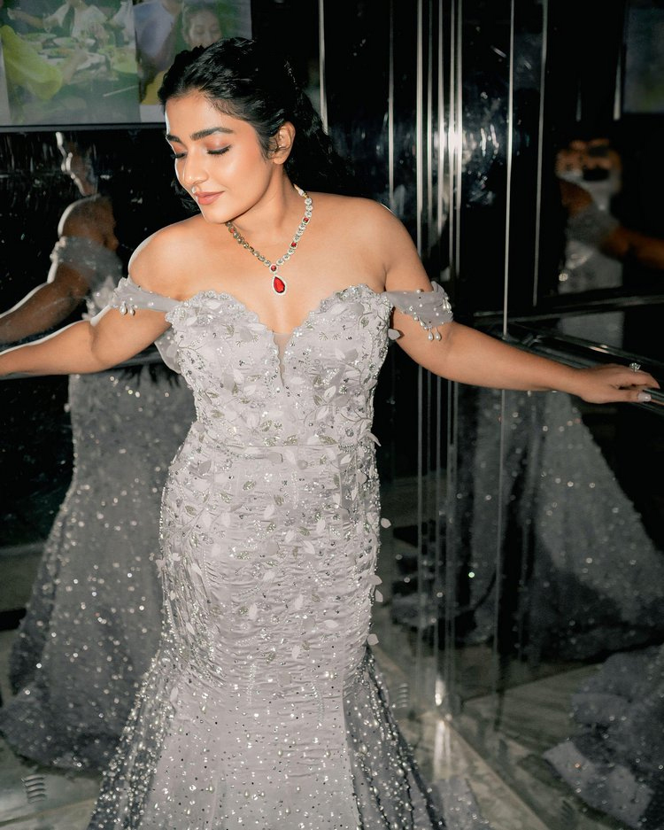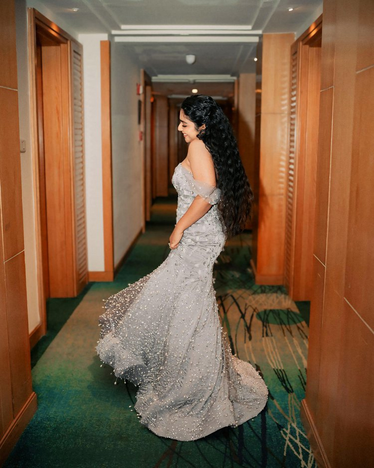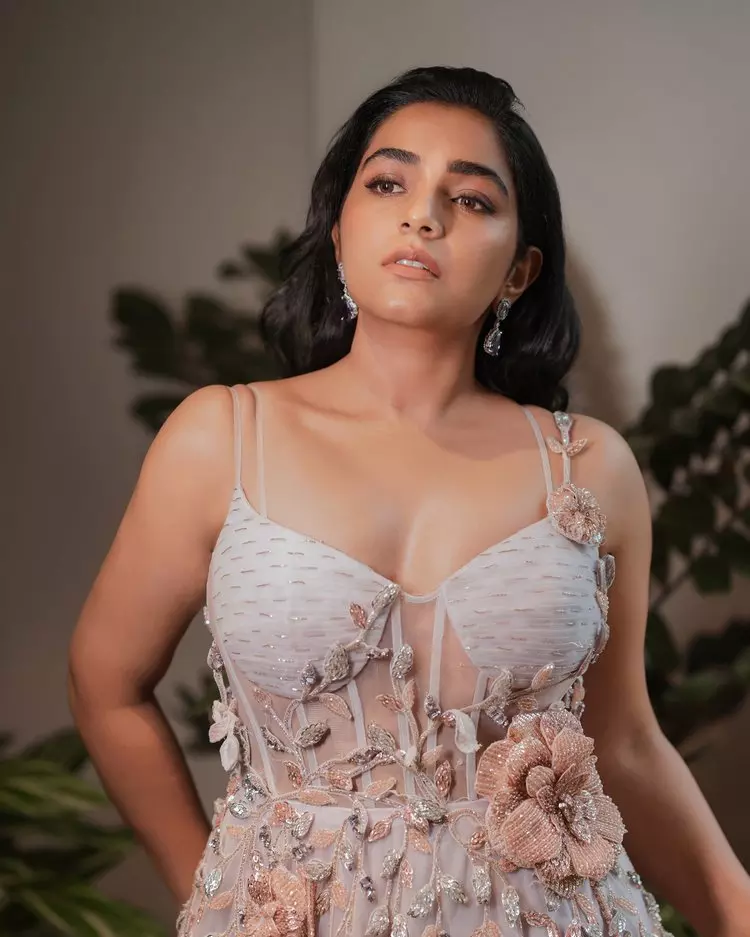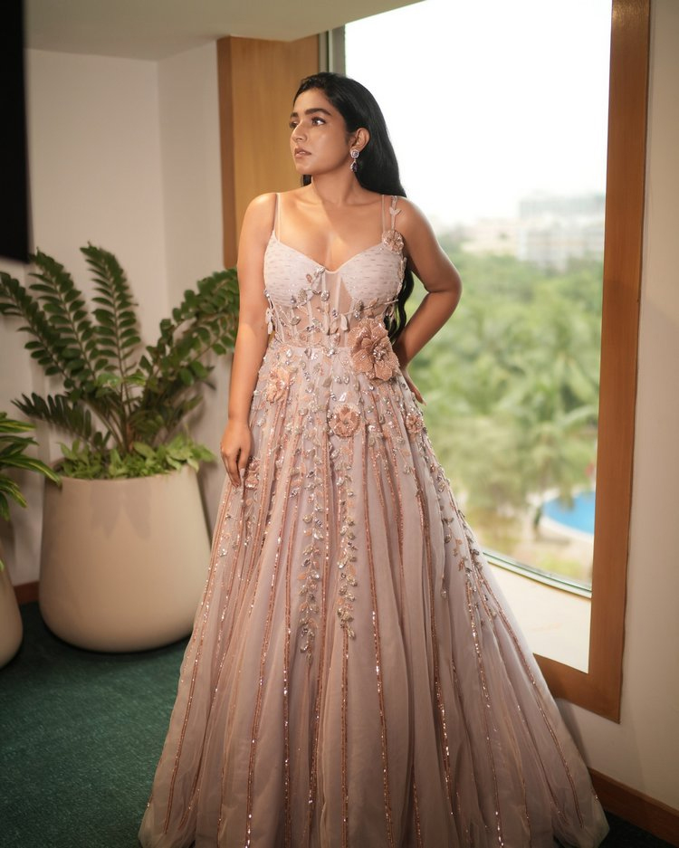 On her Instagram, Rajisha recently shared a picture where she effortlessly rocks a beautiful, intricately designed dress adorned with floral patterns.