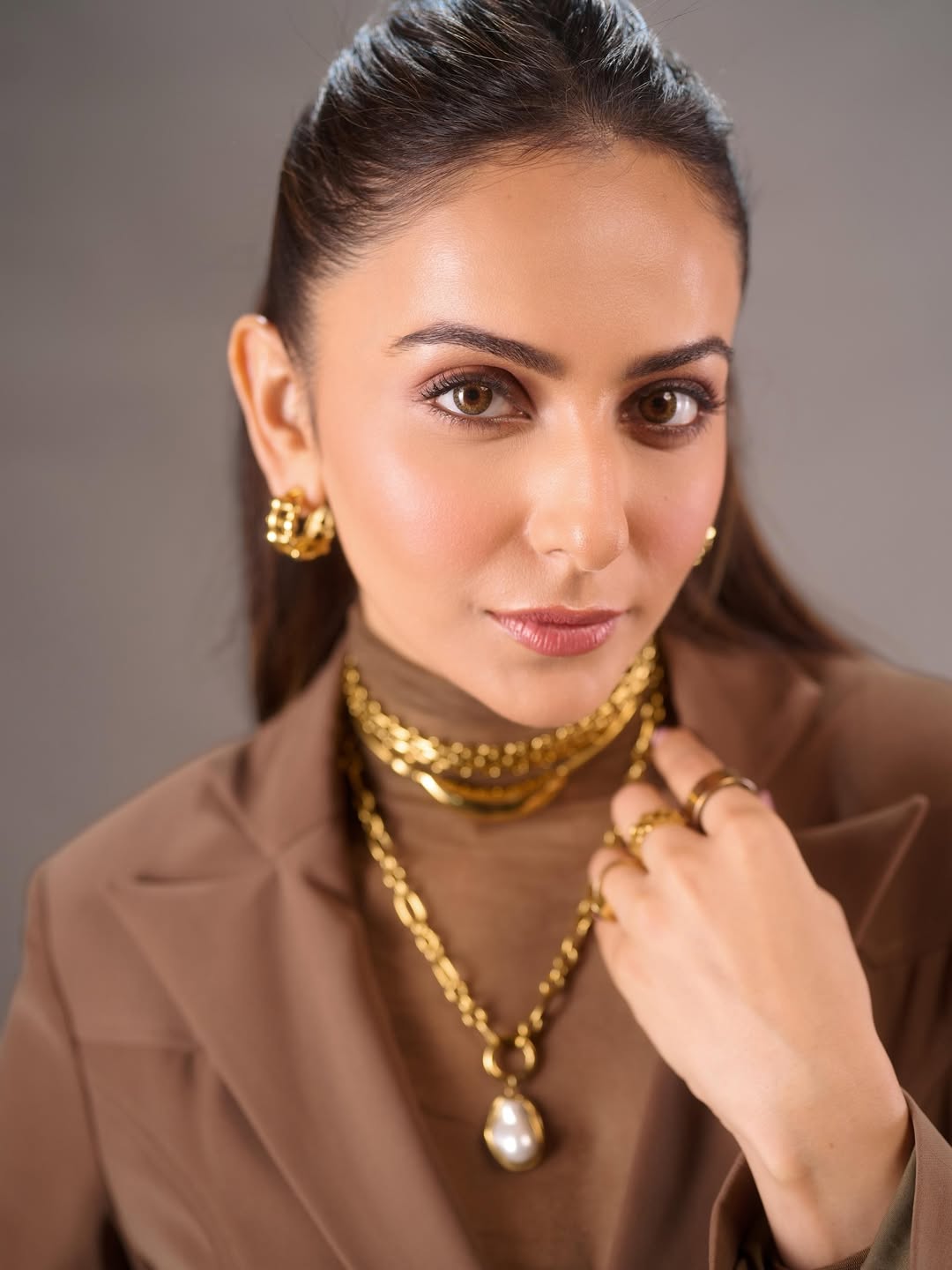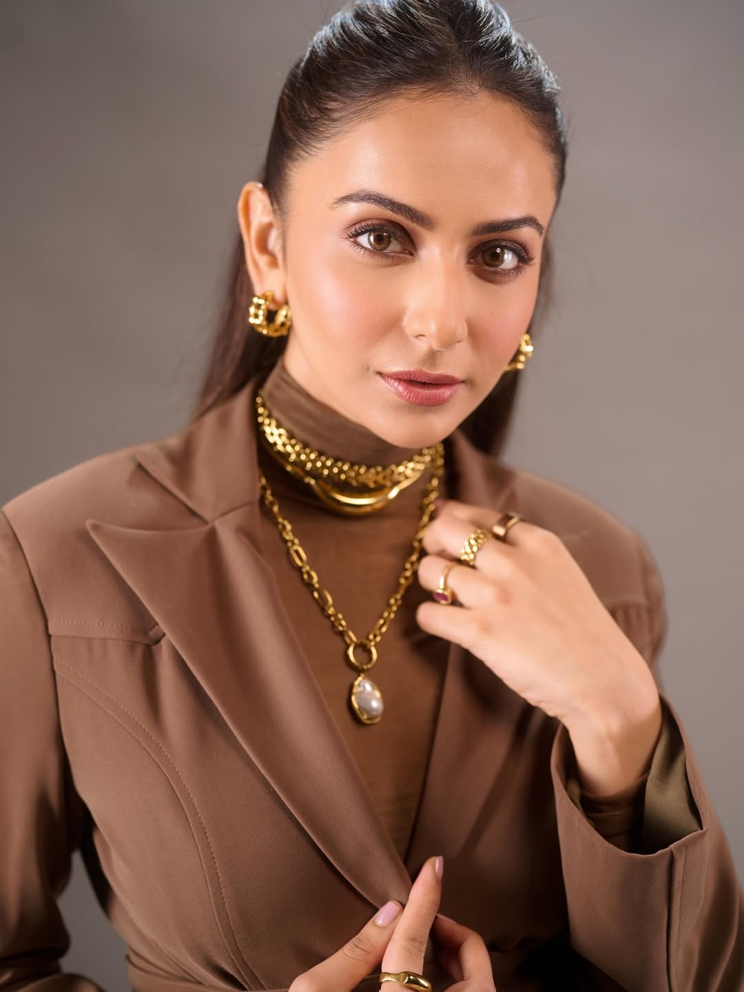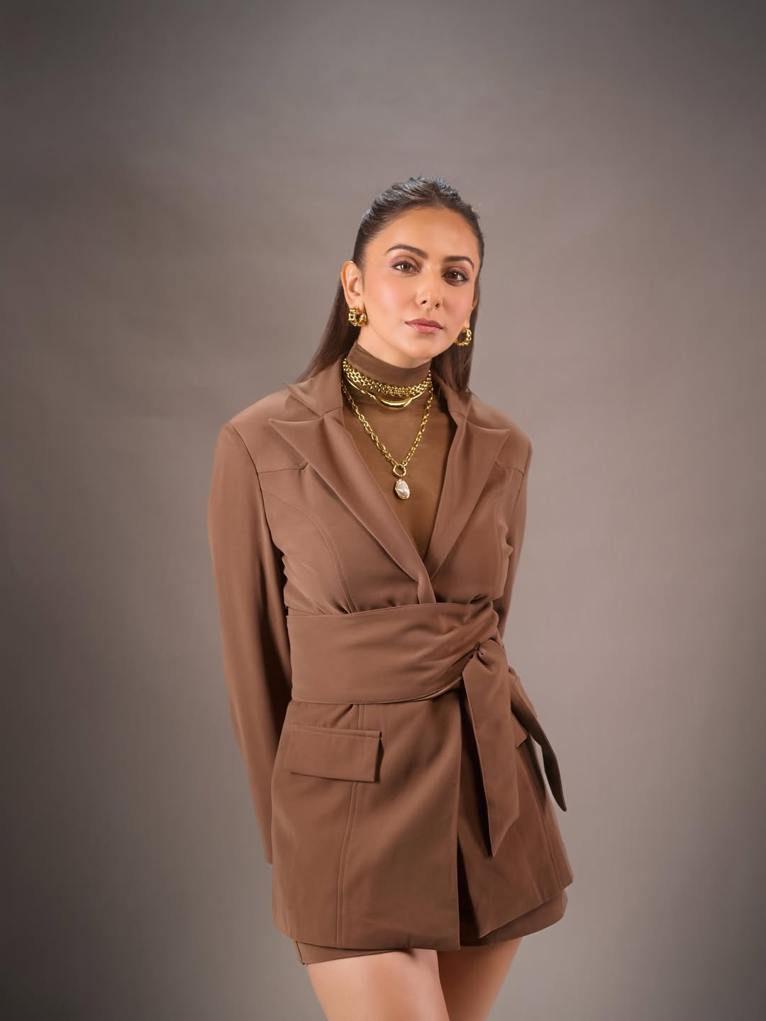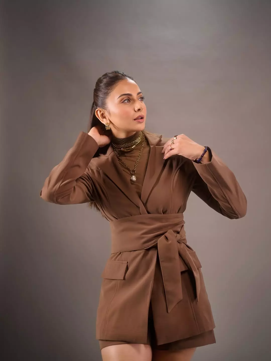Rakul Preet Singh Stuns in Chic Brown Blazer Co-Ord Set