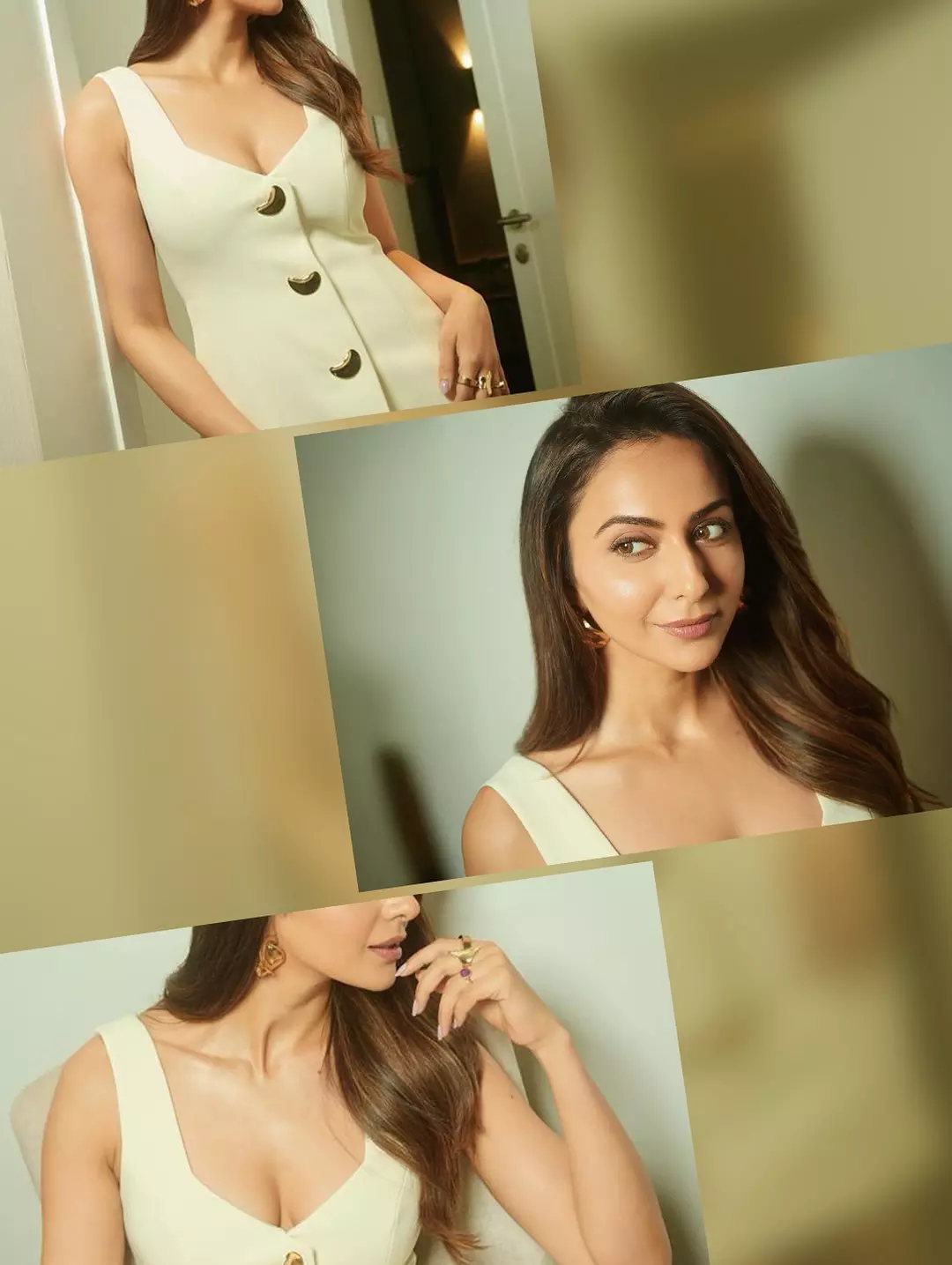 From chic dresses to tailored ensembles, Rakul’s wardrobe choices highlighted her fashion-forward sensibilities, while her confident poses, radiant smile, and effortless grace made every frame captivating. Thoughtfully chosen accessories, elegant footwear, and flawless hair and makeup added the perfect finishing touches to her polished looks.