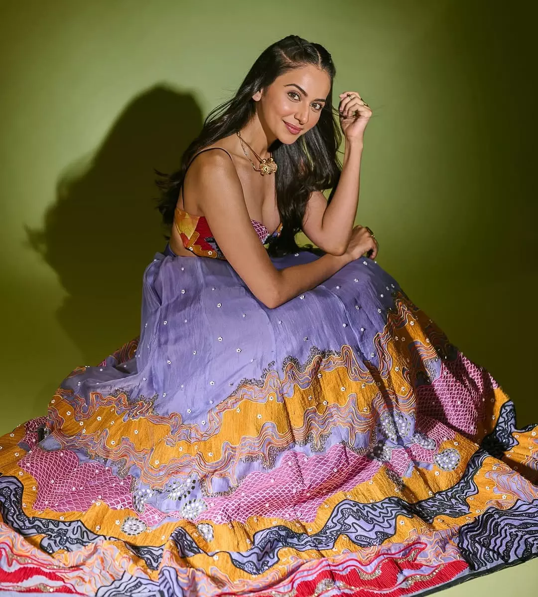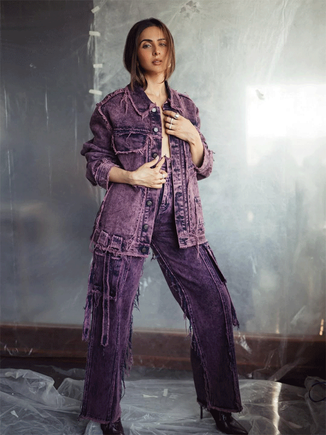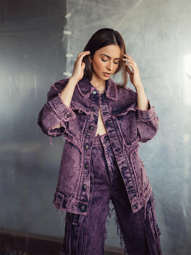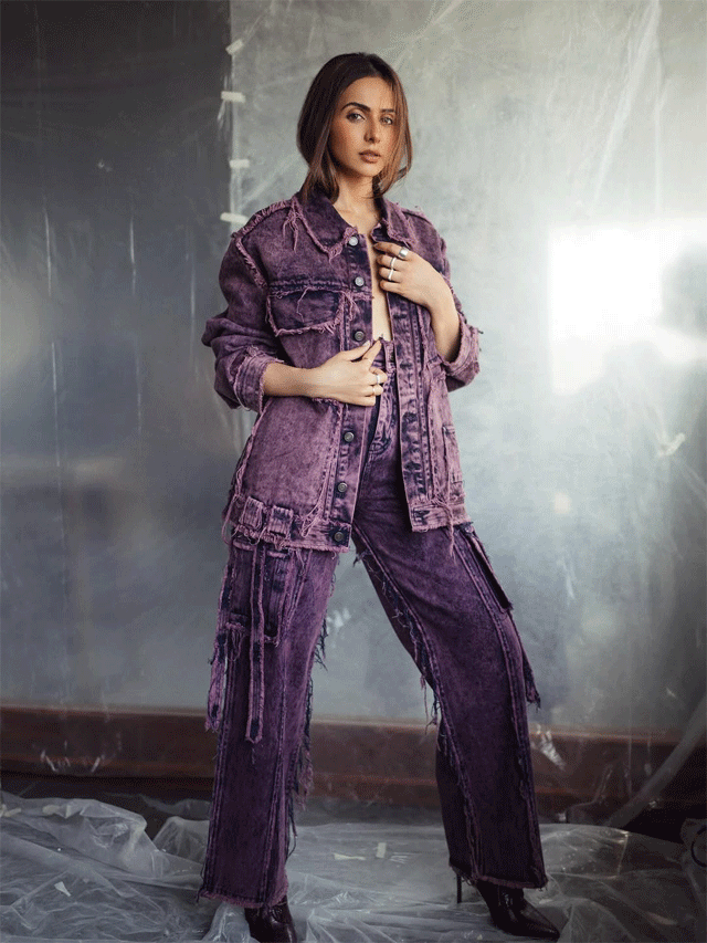 Rakul Preet Singh recently shared a stylish picture on Instagram with the caption, “messy hair mood,” along with two purple heart emojis. She looked gorgeous in a purple distressed denim co-ord set designed by Dhruv Kapoor. The edgy look was completed with trendy rings by Akirahin India and matching footwear from London Rag India.