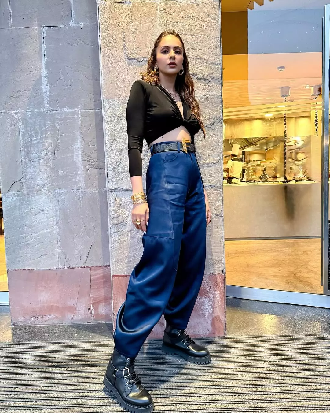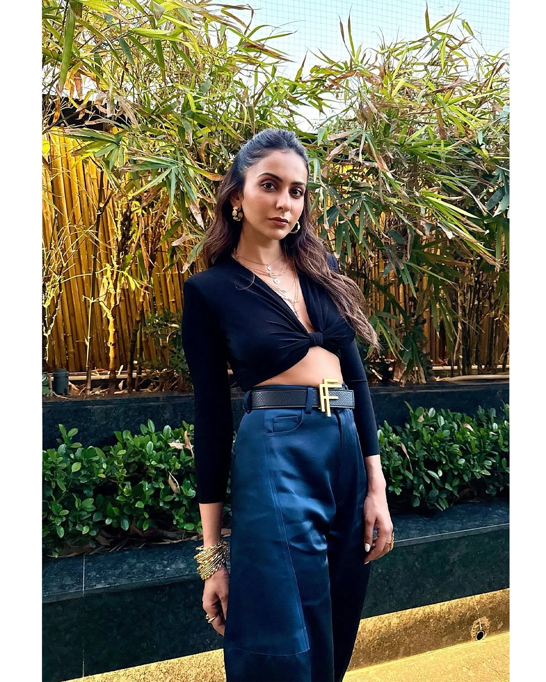 Rakul Preet Singh recent pics are making everyone go gaga. Dressed in a trendy black crop top and navy blue pants, she looked both elegant and modern.