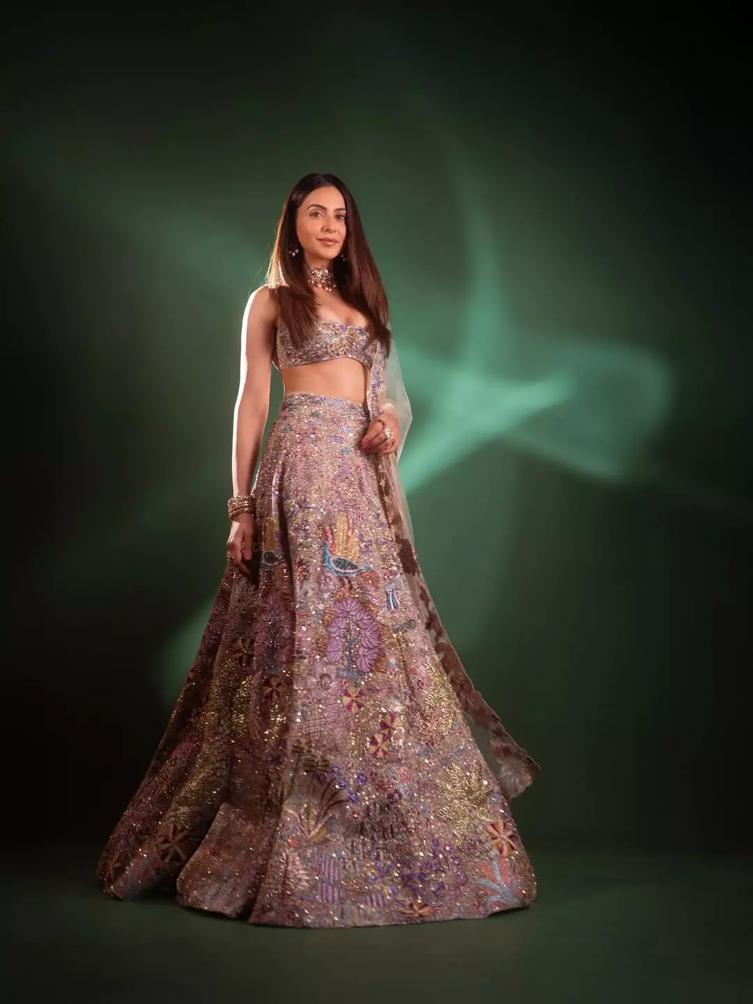 Rakul Preet Singh shared a beautiful Diwali photo on Instagram that received a lot of love from her fans. In the picture, she is seen wearing a sparkly lehenga in light colors, along with matching jewelry. Her straight hair, soft makeup, and bright smile make the picture even more attractive.