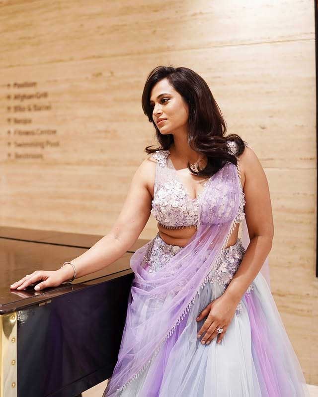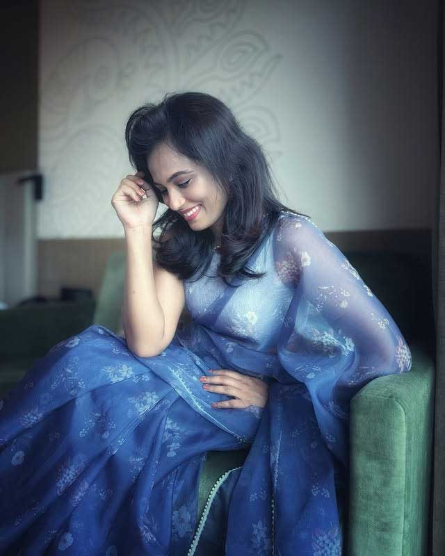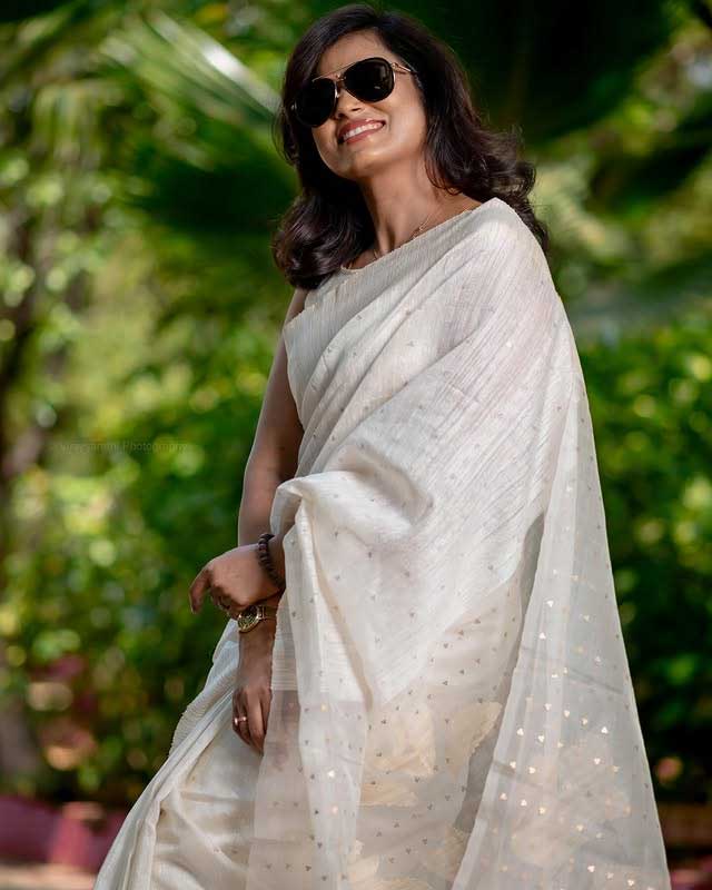 In this post, Ramya wore a saree designed by Madhurya Creations, paired with a chic blouse by Zarigai by Gitanjali.