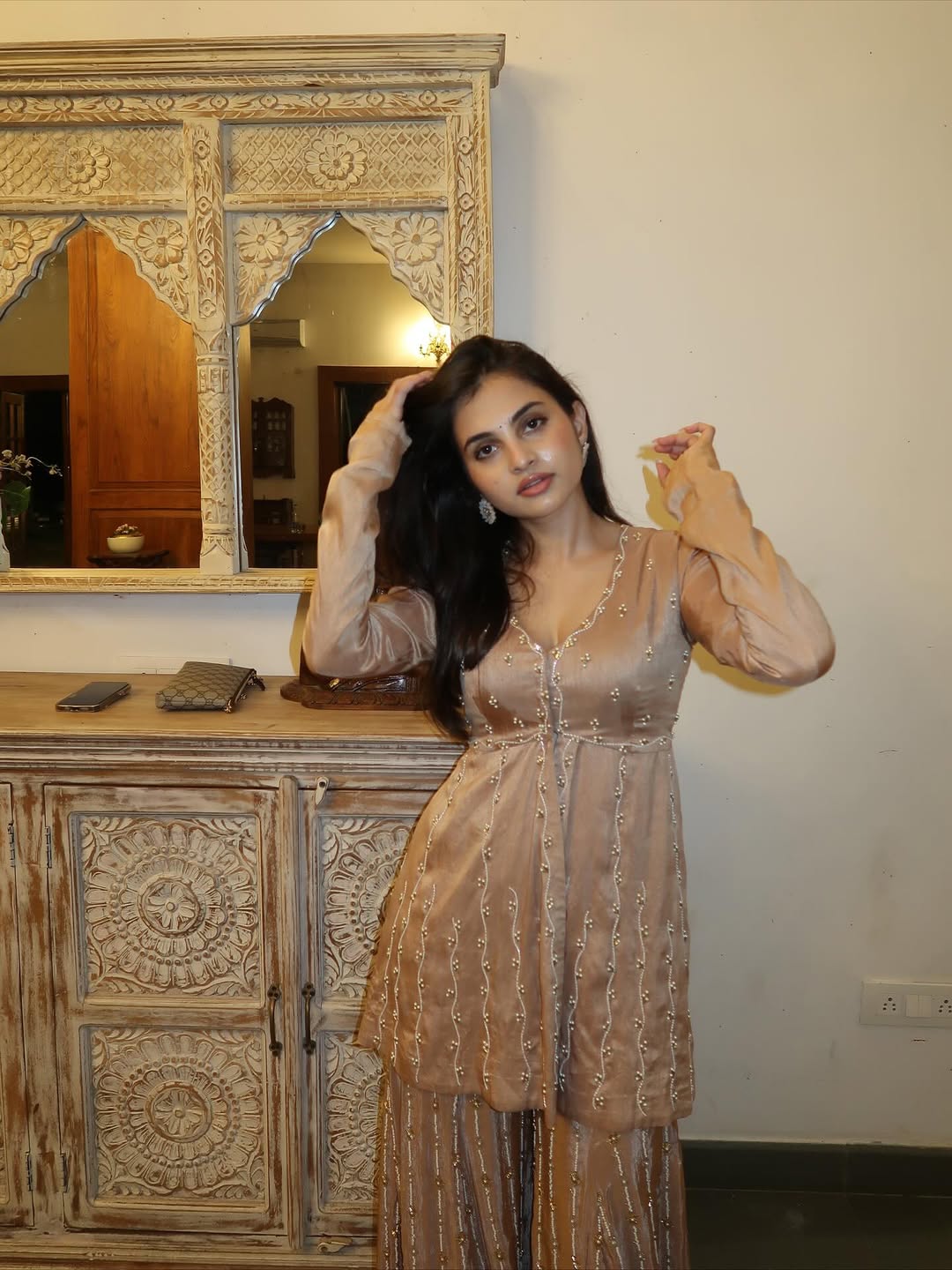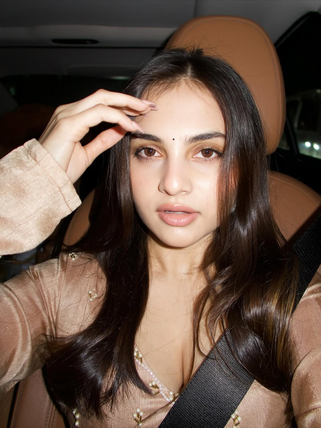 In one of the pictures, she posed in her house, standing in the living room. In another photo, she is seen near the staircase. While in the other photo, the actress is seen inside the car. She put up the festive glow with the perfect dress, enhancing the glow and glamour altogether.