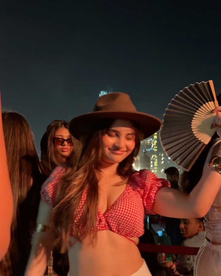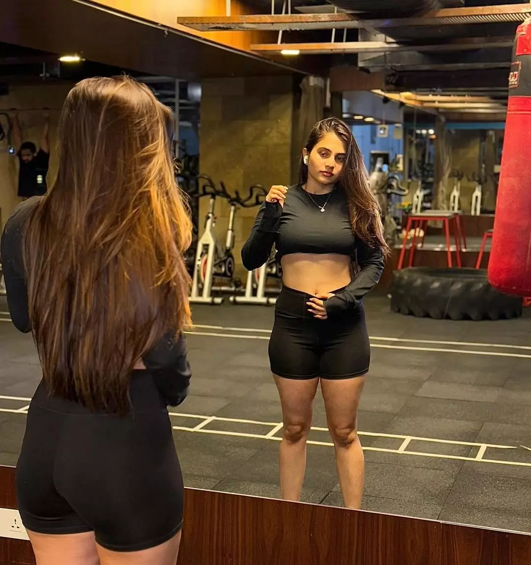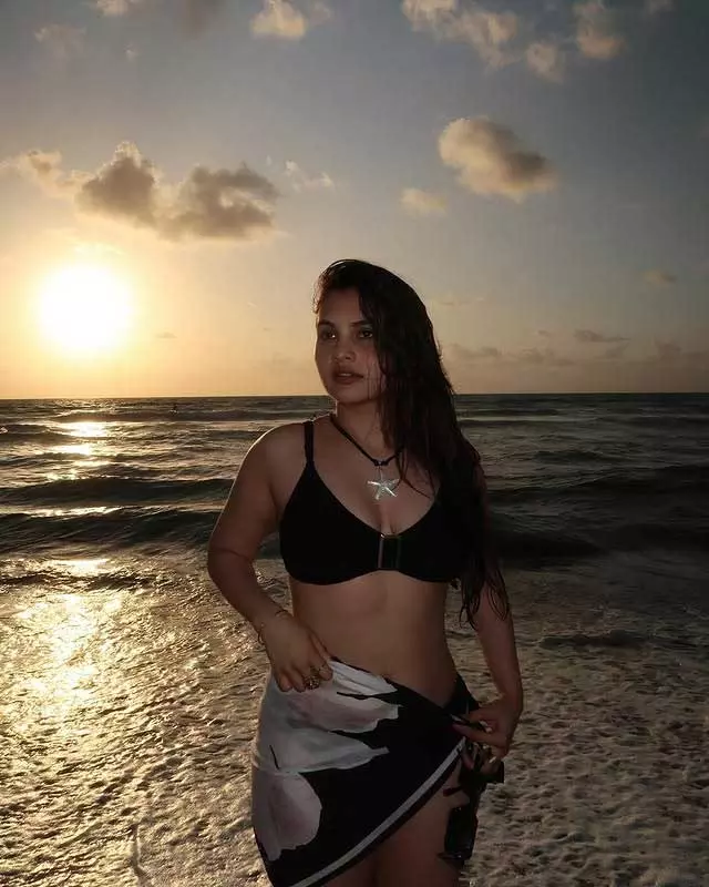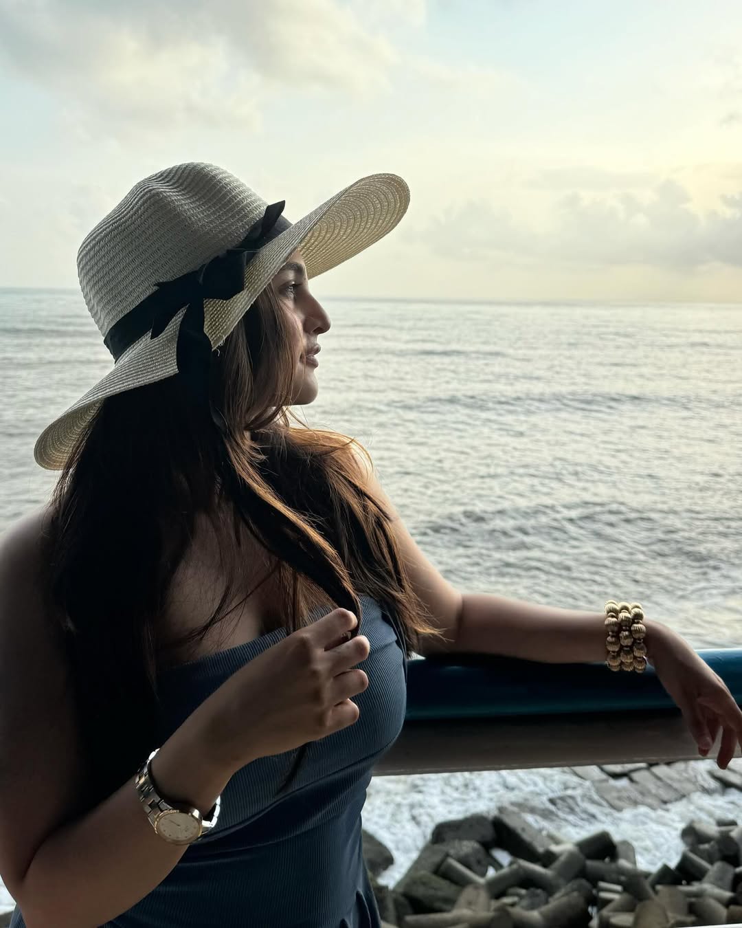 Her posts blend glamorous ethnic looks—like elegant pink lehengas with intricate details and radiant smiles—to chic modern outfits, beach glam, fitness glimpses, and glowing seasonal vibes.