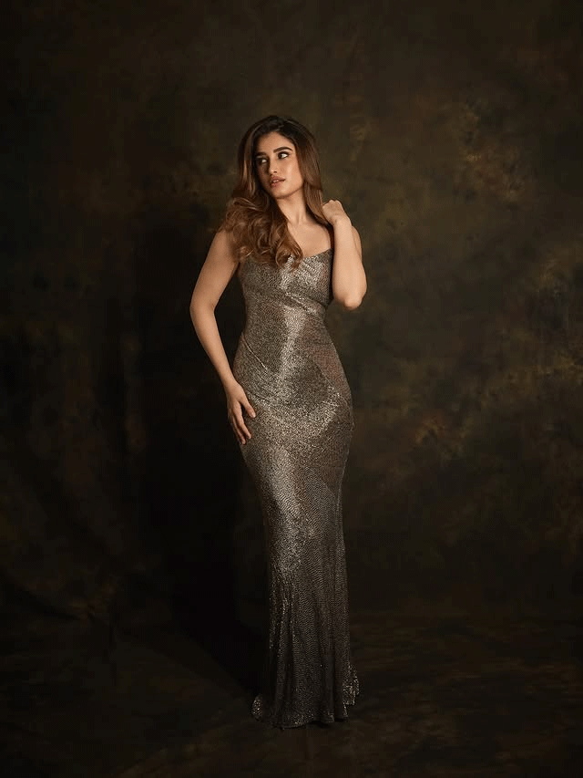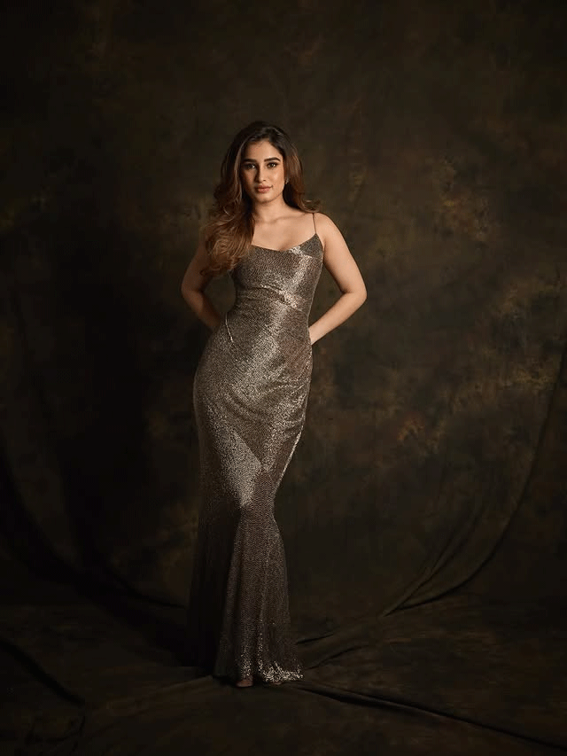 The sleeveless silver dress had a slim, body-hugging fit with delicate spaghetti straps. A standout feature of the dress was the sheer panel from the knees down. The floor-length dress shimmered under the lights making Rasha look like a true fashion star.
