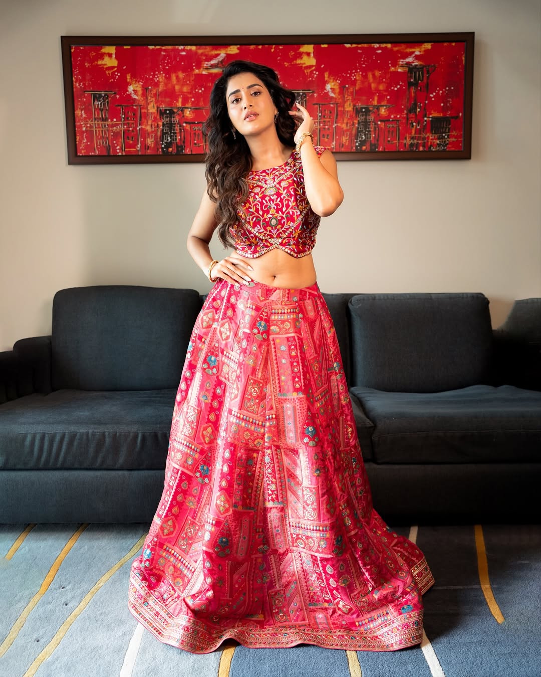 Rashi Singh Stuns in Pink-Red Lehenga, Redefining Festive Fashion