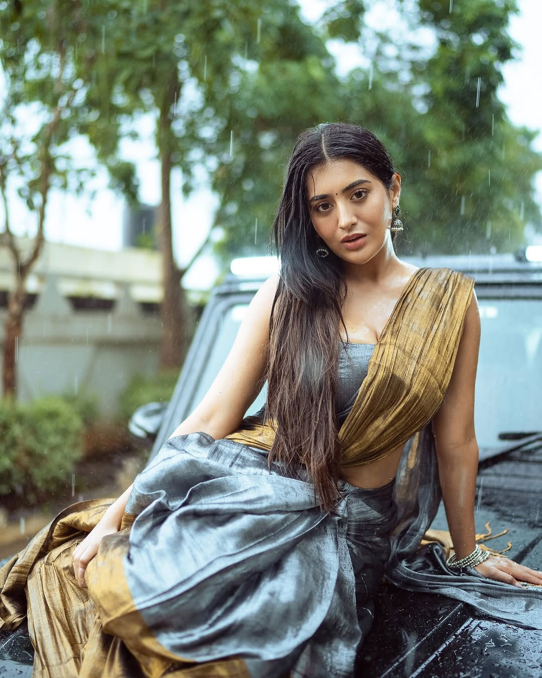 1 / 31Rashi Singh Rocks Metallic Saree in Rain