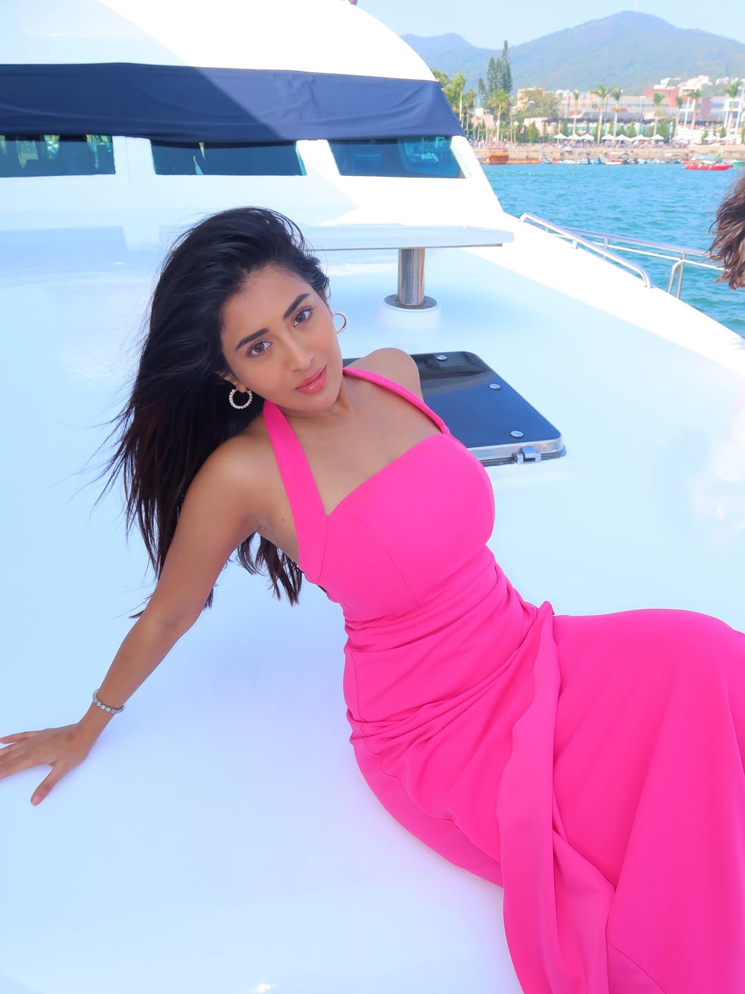 Actress Rashi Singh is soaking in the sun and serving pure summer energy in her latest vacation click. Dressed in a vibrant hot pink outfit, Rashi looks effortlessly radiant as she poses against a breathtaking blue seascape. With a woven straw hat framing her face and the golden sunlight kissing her skin, the actress captures the perfect blend of glam and serenity. Her closed eyes and relaxed expression reflect confidence, calmness, and a woman fully embracing her moment.