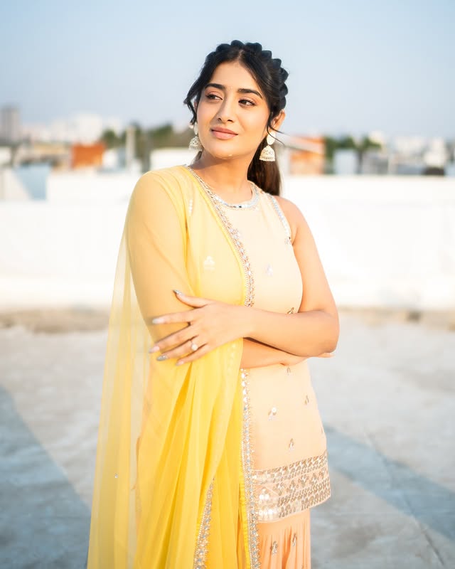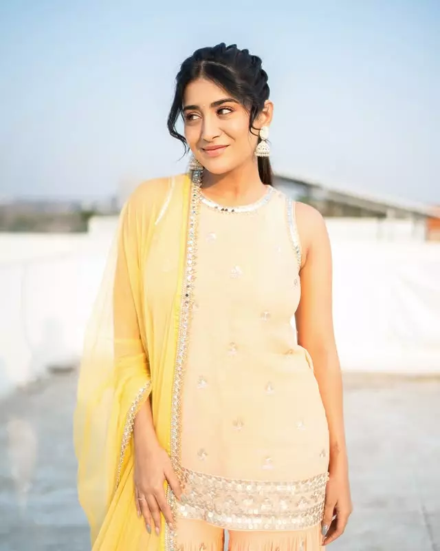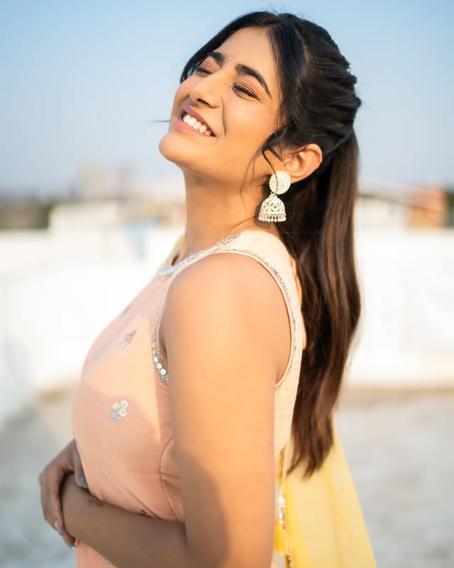Rashi Singh looks absolutely stunning in this beautiful photo posted on Instagram. She is wearing a soft yellow traditional outfit that shines in the sunlight.