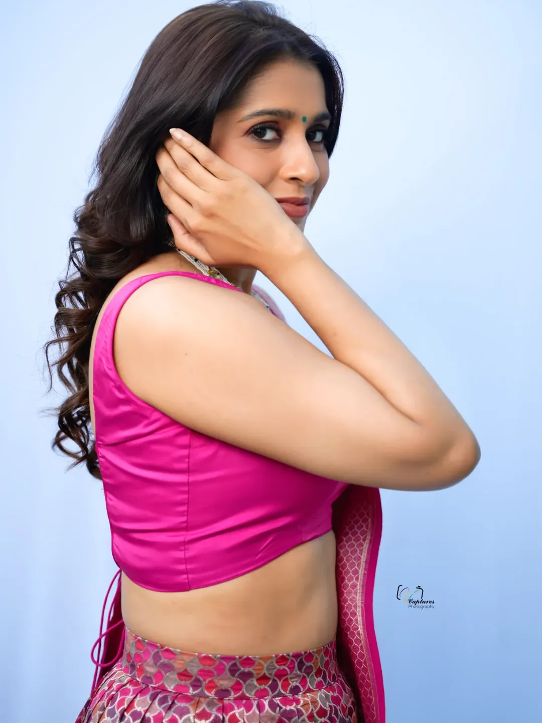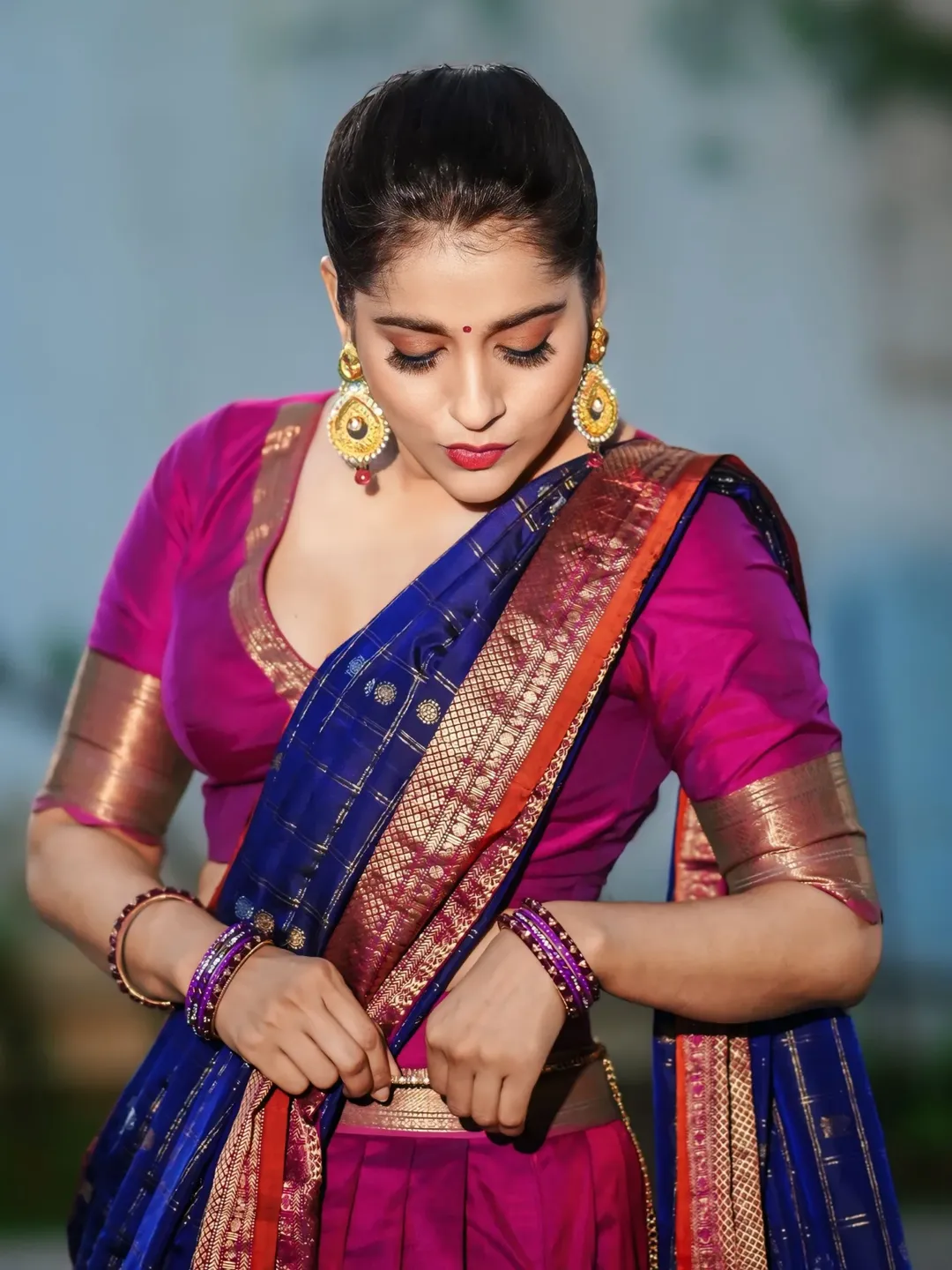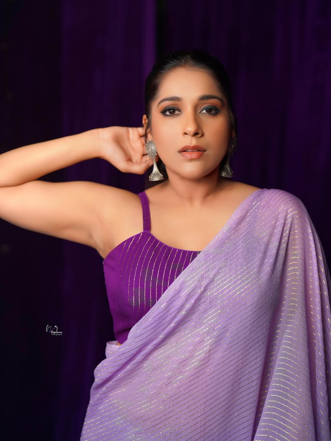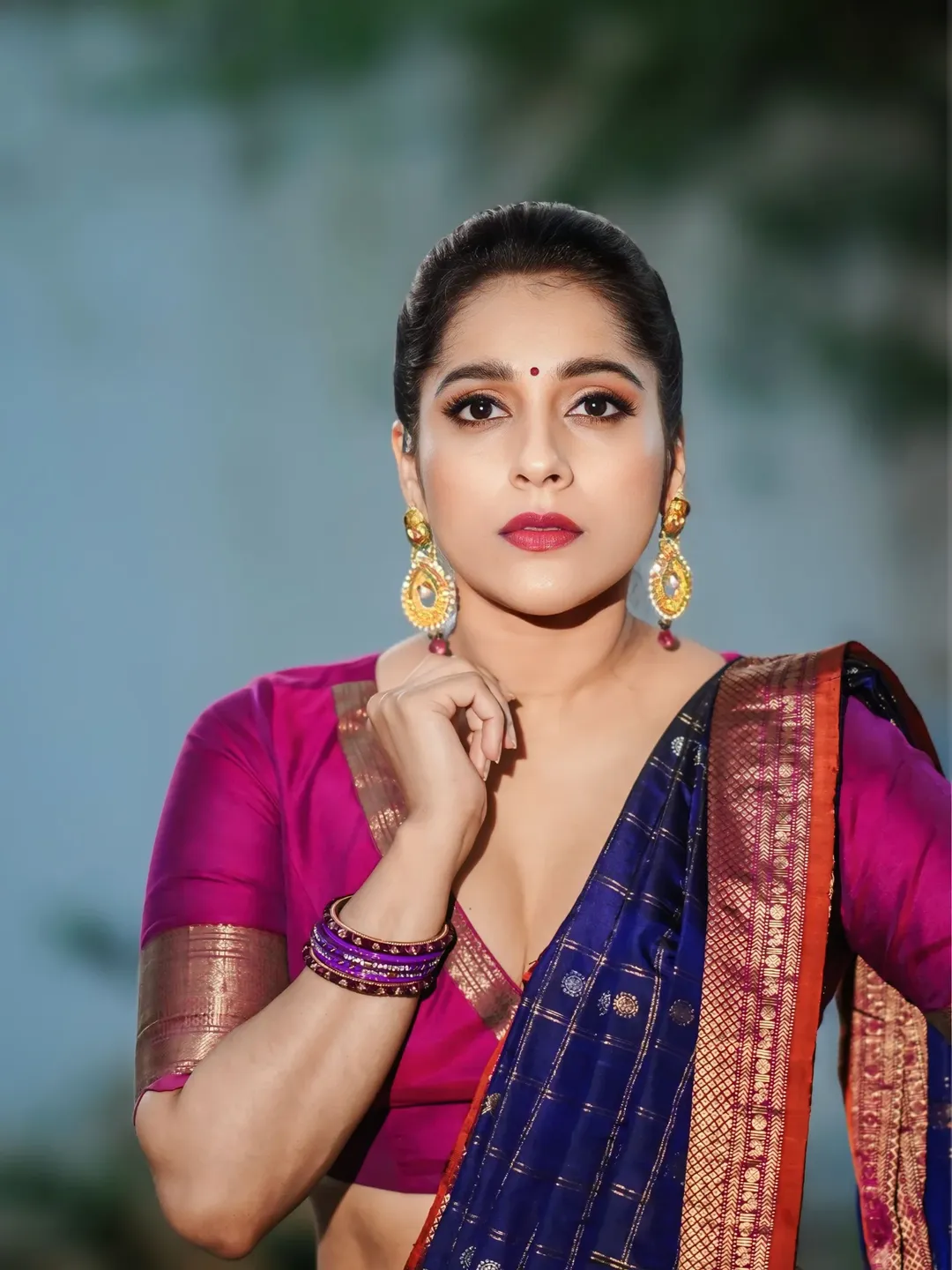 Telugu actress and popular TV host Rashmi Gautam stuns in her latest photoshoot, donning a breathtaking orange traditional outfit from @varahi_couture.