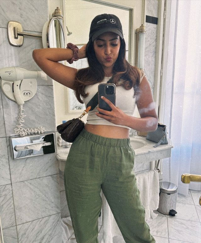 She seamlessly moves between diverse looks. Vibrant saris with intricate detailing showcase her traditional grace, while chic dresses, bold silhouettes, and trendsetting co-ords highlight her modern, fashion-forward sensibilities. Her ability to carry both classic and edgy styles with equal poise reflects her versatile fashion identity.