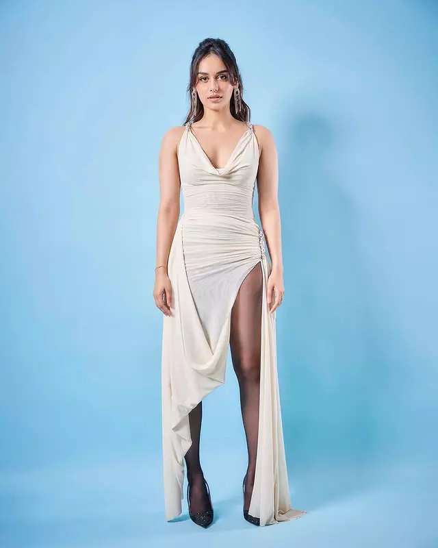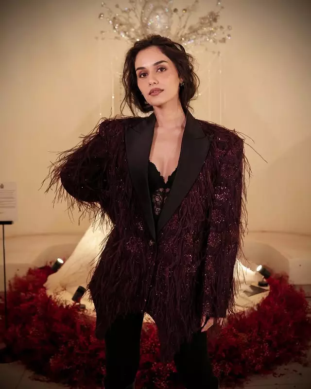 The rich dark base adorned with white blossoms enhances her regal aura, while her simple yet chic hairstyle and statement earrings complete the look perfectly. Manushi, who rose to fame as Miss World 2017, has gracefully transitioned into acting, winning hearts with her performances and poised demeanor.