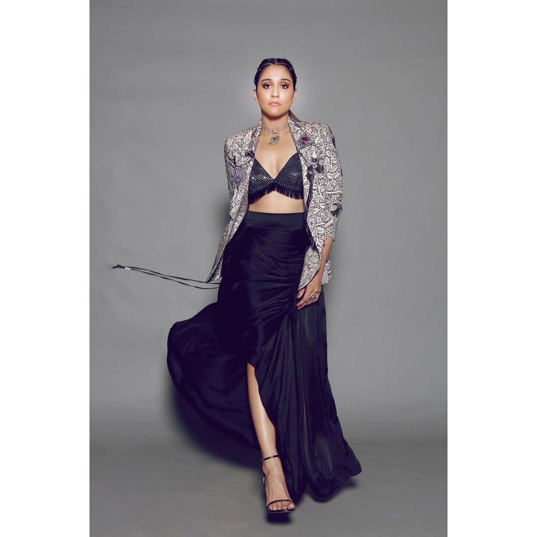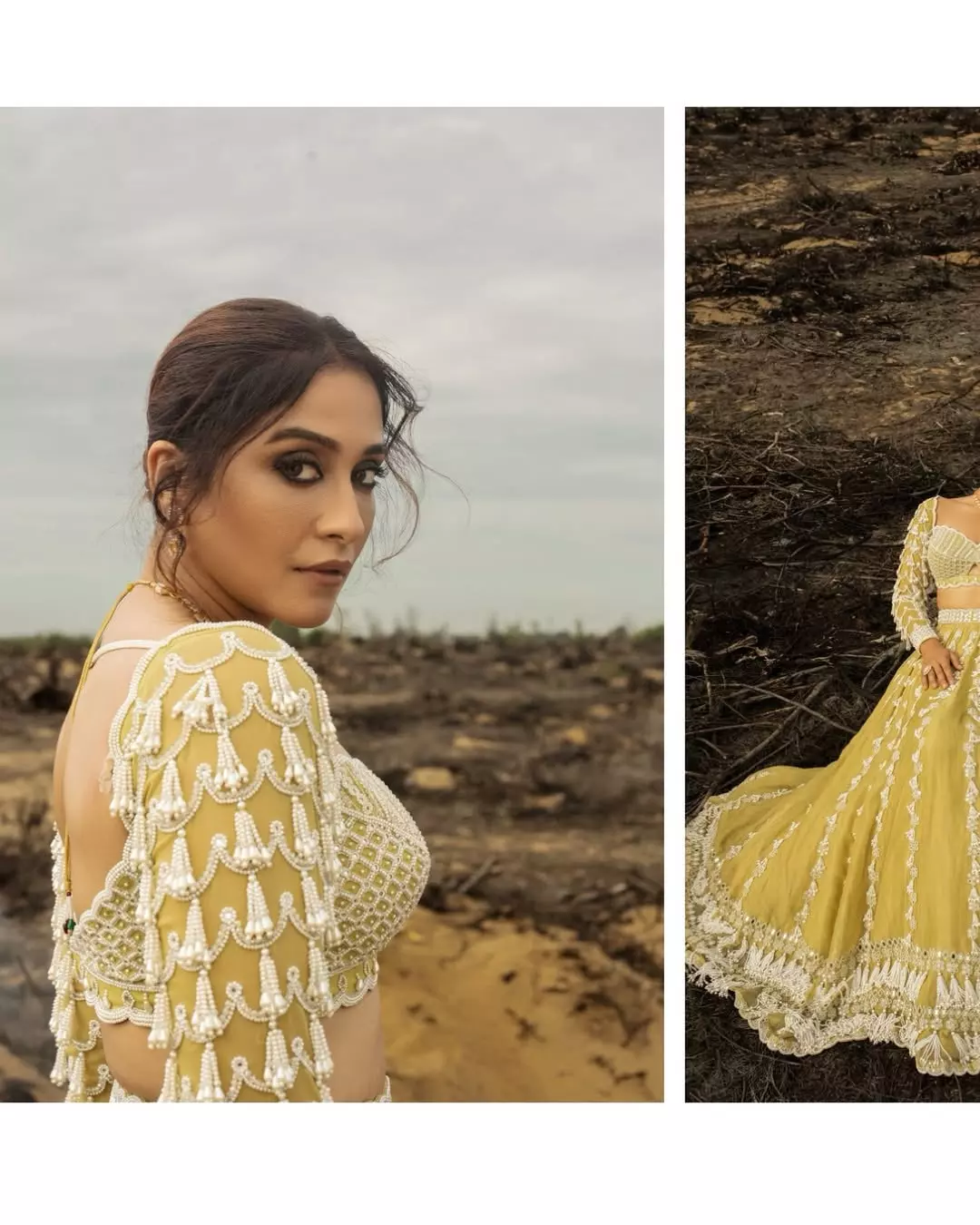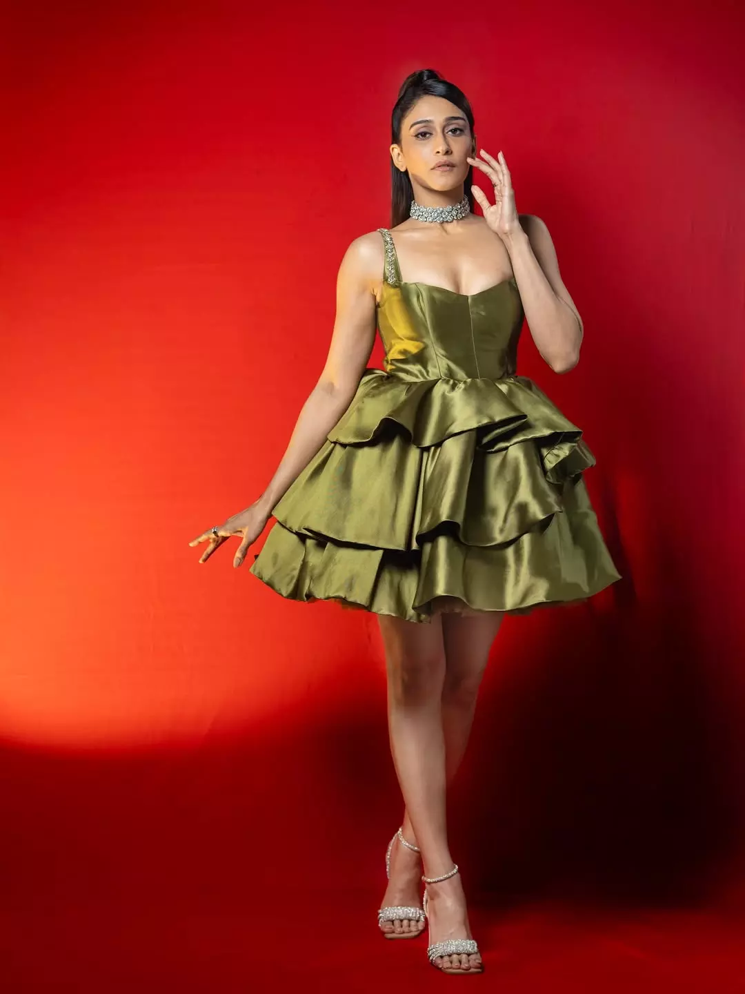 Actor Regina Cassandra shared a new photo on Instagram. She wore a stylish olive green dress with layered detailing and a sleek design. She completed her look with a silver choker and subtle makeup. Her caption read, “The grass is always greener where I stand.”