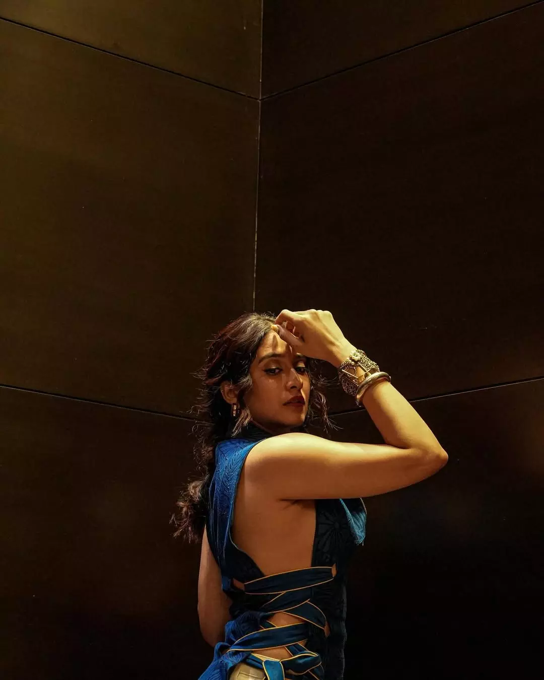 Many creative people were part of this look. The styling was done by Official Anahita, makeup by Nergis Seevera, beauty work by Jeni Makeup Artist, hair styling by Hair by Drishya, draping by Drapes by Chandra, and overall look support by Pranathi Varma. The picture itself was captured beautifully by Pramod Captures.