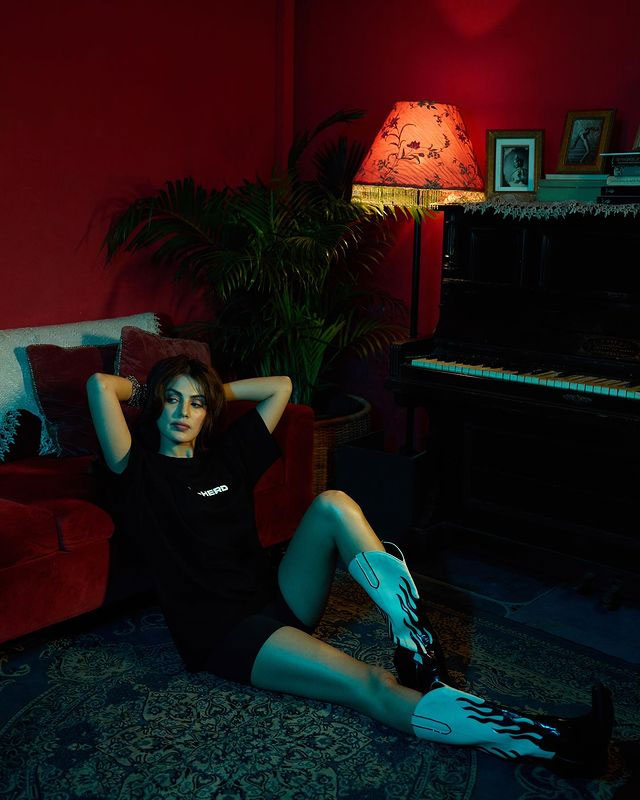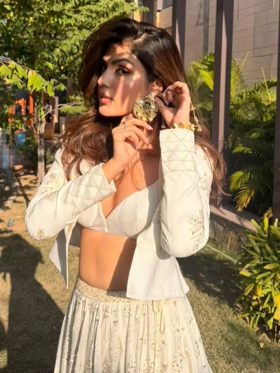 Styled by Fit: @sukritiandaakritiofficial, the ensemble contours her frame flawlessly, enhancing her poised and confident aura. She pairs the look with subtle yet sophisticated pieces from Jewellery: @ehsaasjewellery, allowing just the right hint of shimmer to elevate the outfit without overshadowing its elegance.