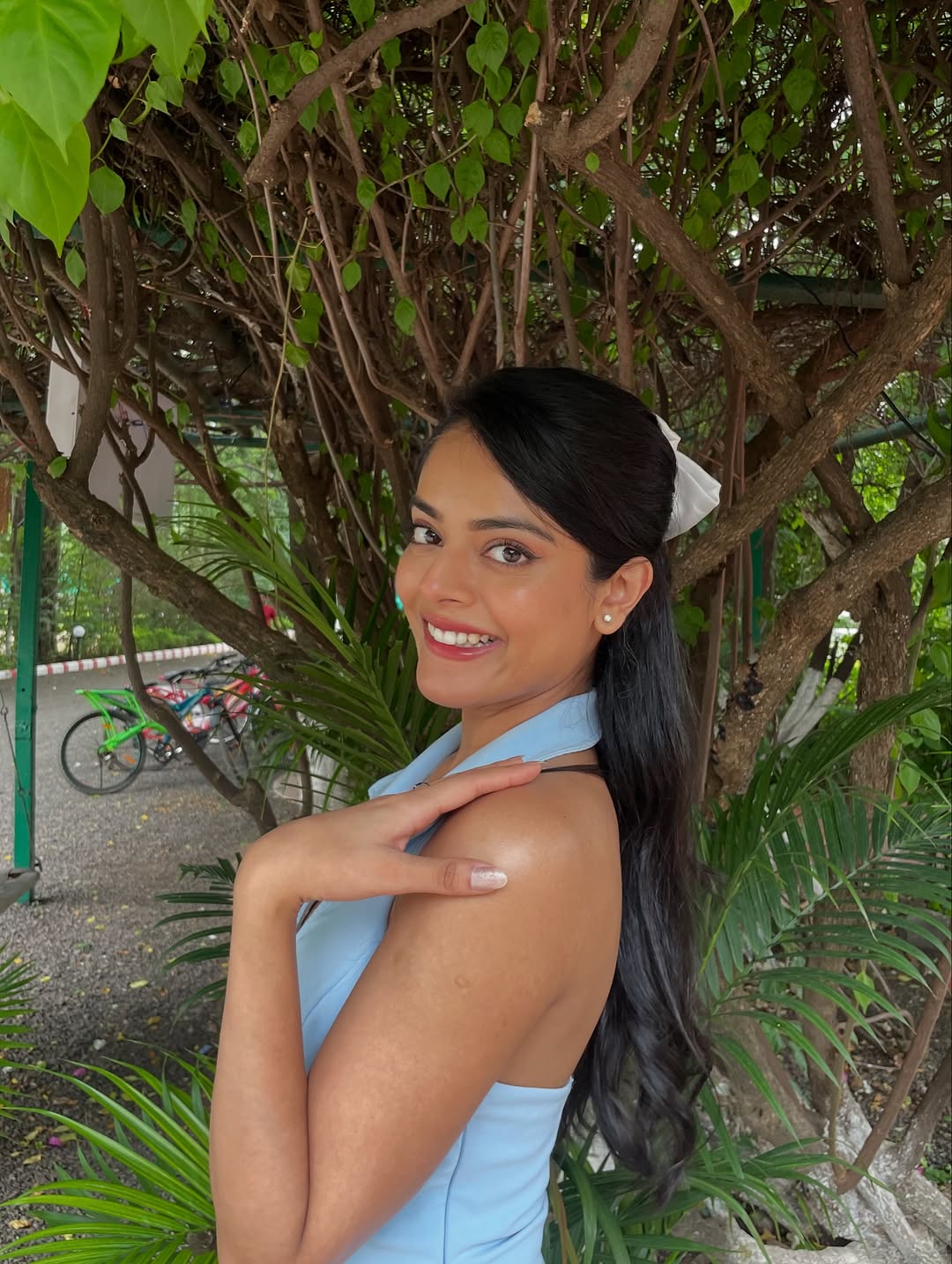 In the caption, Riddhi wrote, “Baby blue baby girl 💙”. She also tagged @missuniverseindiaorg, @iamnikhilanand, and @missuniverse.