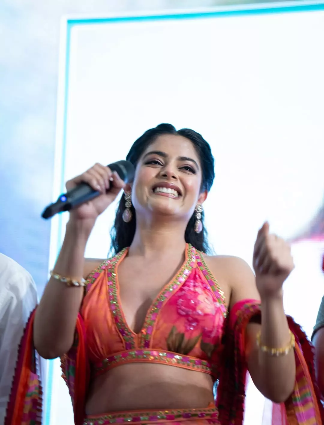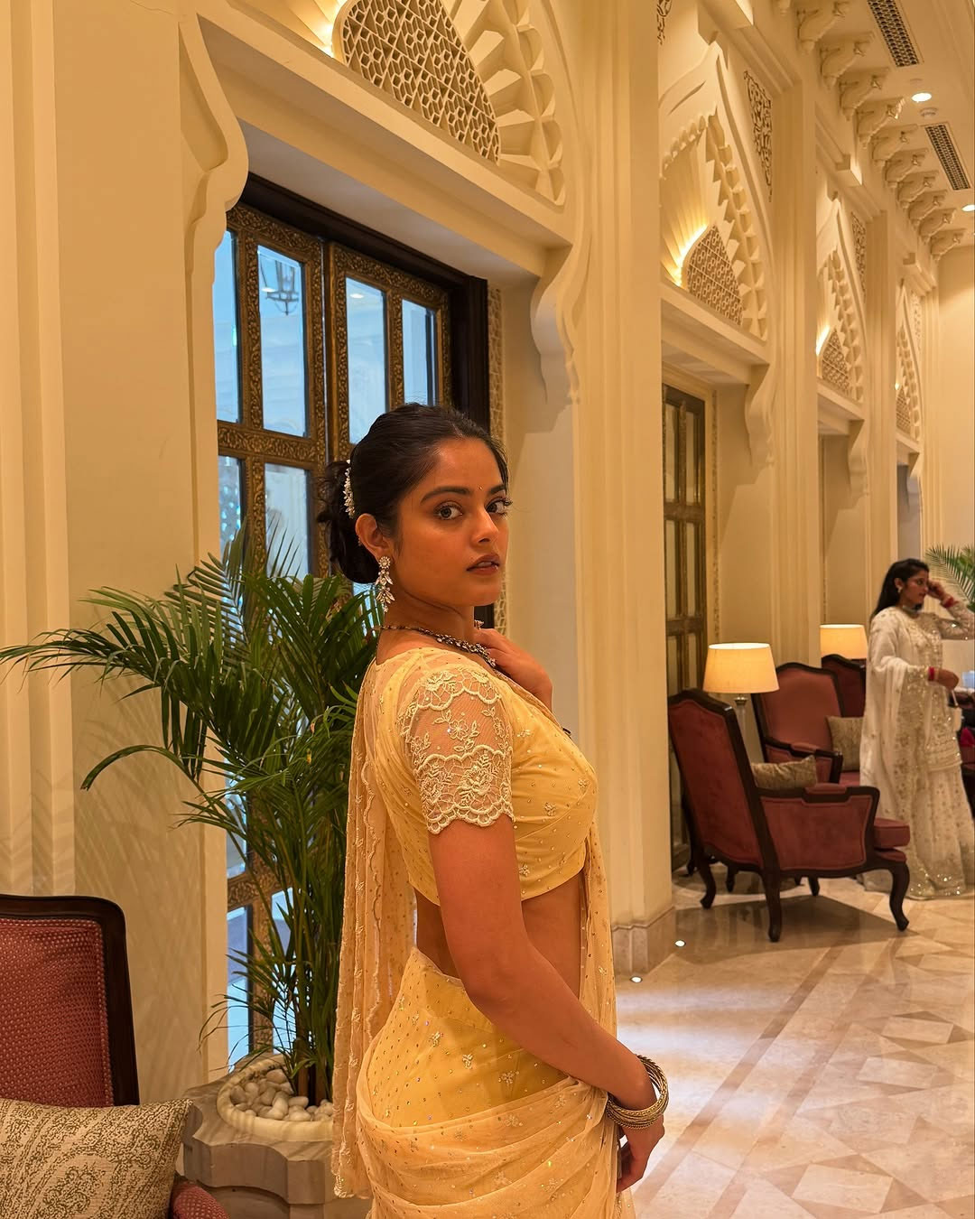 According to the caption shared by Riddhi Kumar, the look was created especially for the Nache Nache song launch. She praised music composer Thaman for continuously raising expectations with every release.