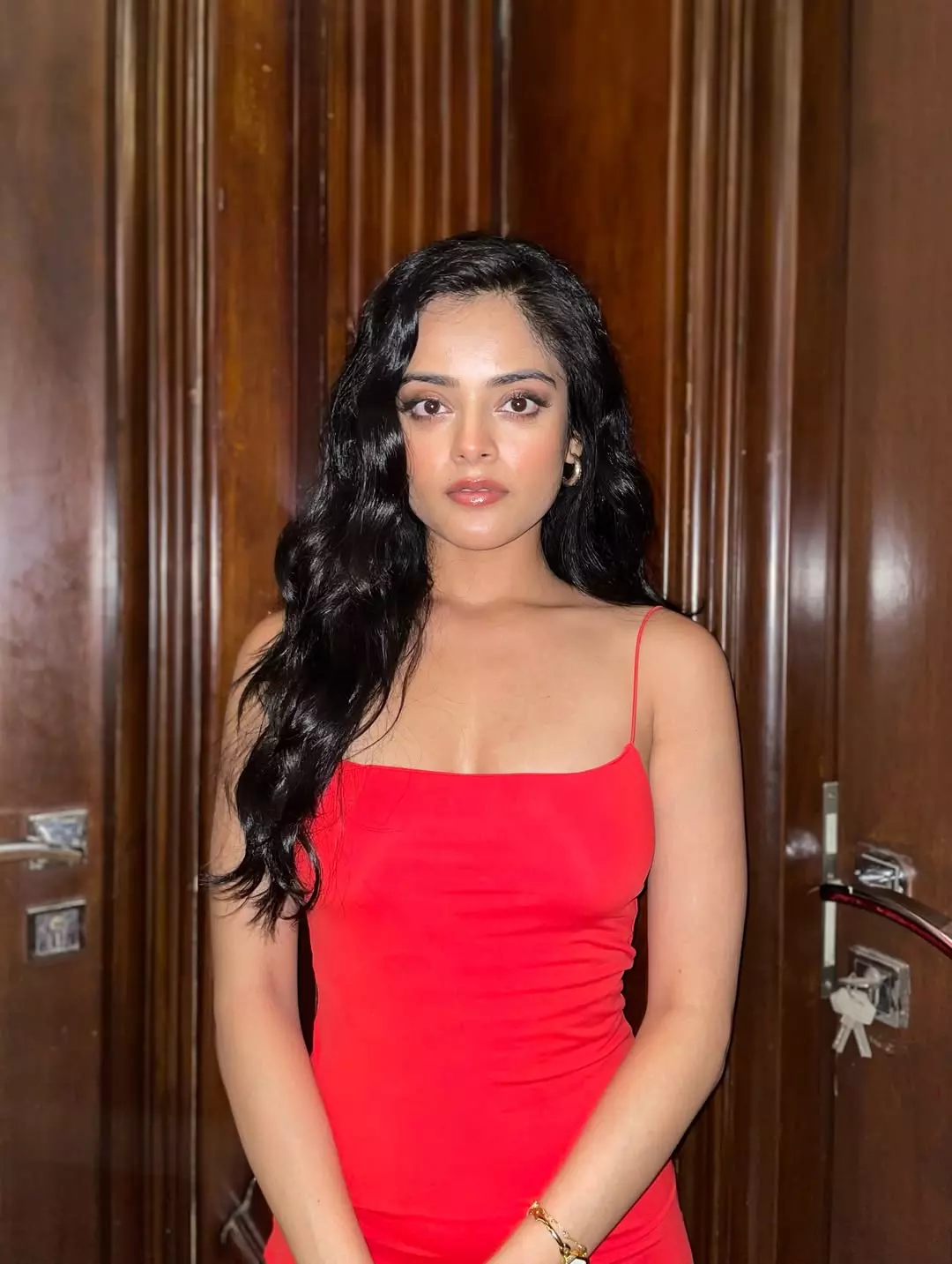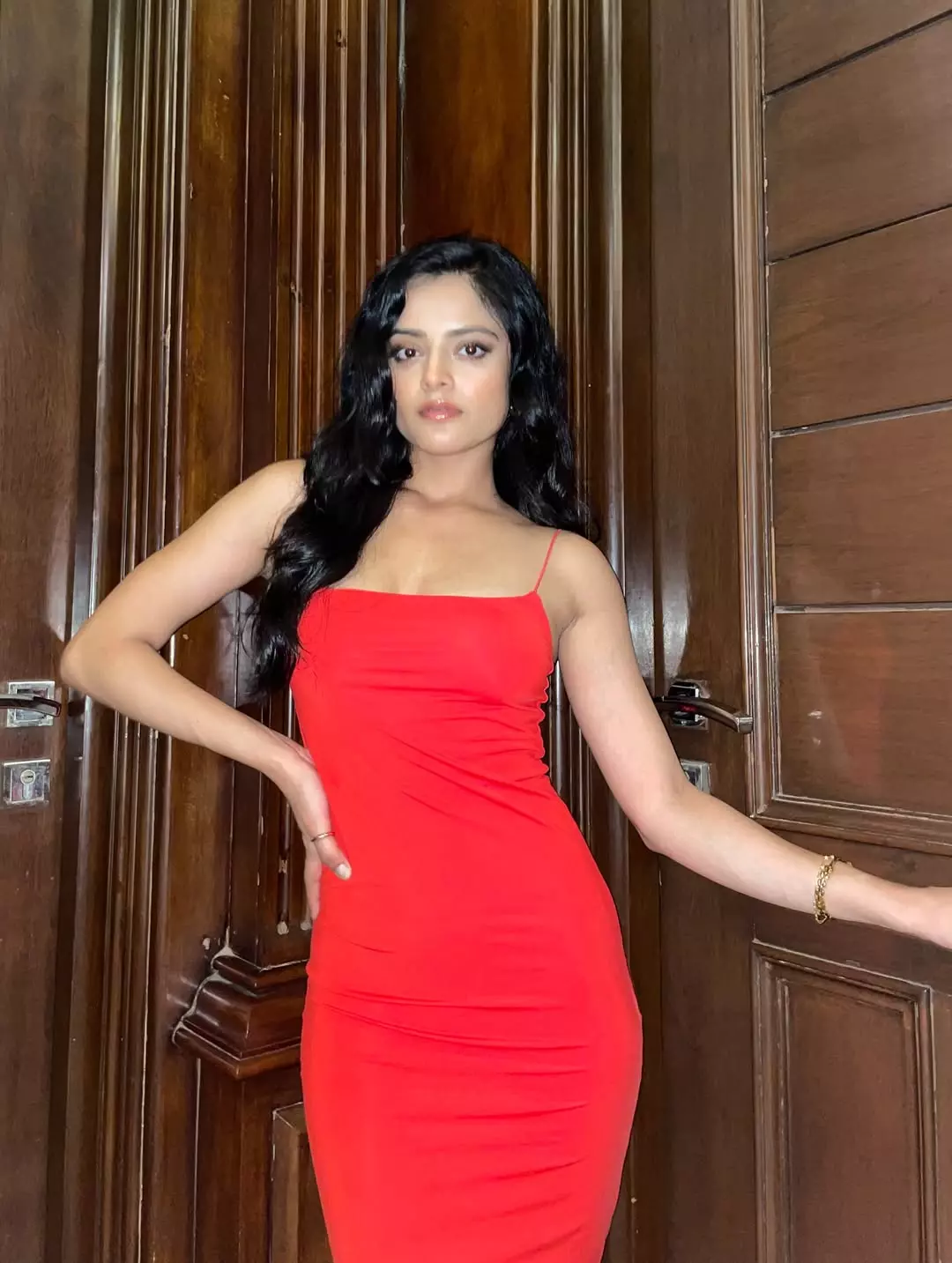 "Rajasthani thali and looks were served last night ✨" captioned the actress for the pictures she shared recently. She wore a red coloured one piece which is a sleeveless one.