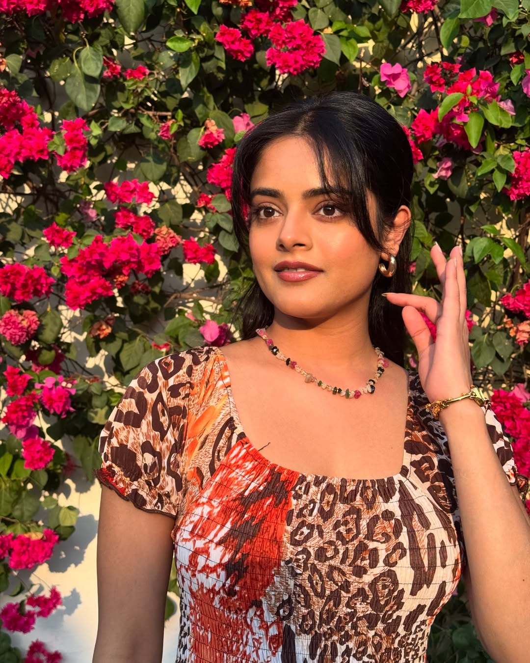According to the Instagram caption, the look was specially created for The Raja Saab movie press conference. The saree was designed by Issa Designer Studio. The jewellery was provided by Matsya Silver Jewellery. The styling was handled by Shefali Deora while the style team included Akshara Mahi. The photos were captured by photographer Chinthu Klikcs and the hair and makeup were done by Makeup Hair by Deepa.