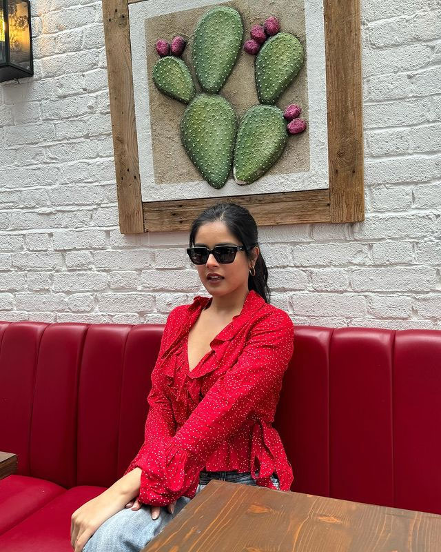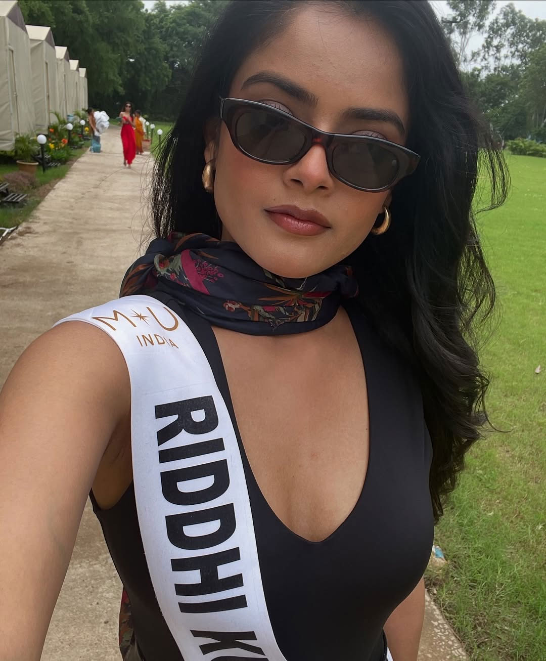 Riddhi Kumar shared a stylish mirror selfie on Instagram. She looked confident and calm. The post was taken at the Unwind Resort. She mentioned her visit was with the Miss Universe India organization. The caption read, “Strutting around the @unwind-_resort with @missuniverseindiaorg ✨”.
