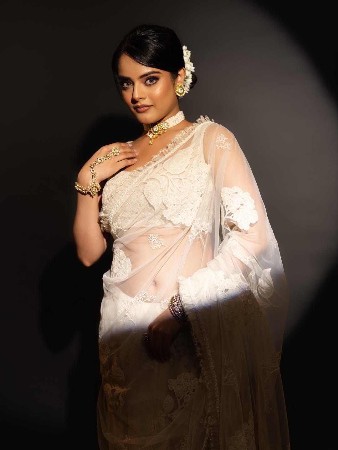 In her caption, Riddhi described the evening as a “Shantipriya moment” and said the night felt deeply personal and close to her heart. She mentioned the film The Raja Saab and credited renowned designer Sabyasachi for the saree. She also thanked her styling and creative team, including Matsya Silver Jewellery, Shold Sherni, Shefali Deora, Akshara Mahi, makeup and hair artist Deepa, and photographer Nakul Varma.