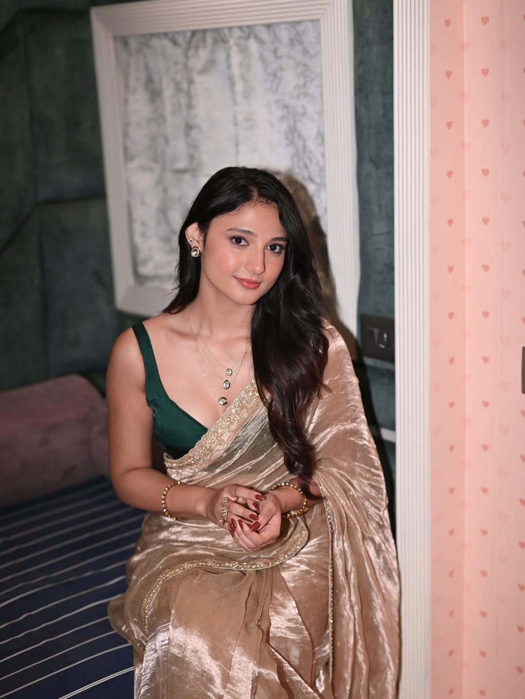 Ritika Nayak shared a graceful picture on her Instagram. She wrote the caption, “Glowing and growing ✨🌻.” Her look was captured by @captured-_fate. Makeup was done by @creatividhii. Hair styling was managed by @blenditlikenavya. She wore an elegant saree by @mintblushdesigns. Her jewelry was from @suhana-_art-_and-_jewels. Styling credits went to @towindia, @dishhhaaa.-_, @purplethoughtsind, and @hetvii-_shahhh.