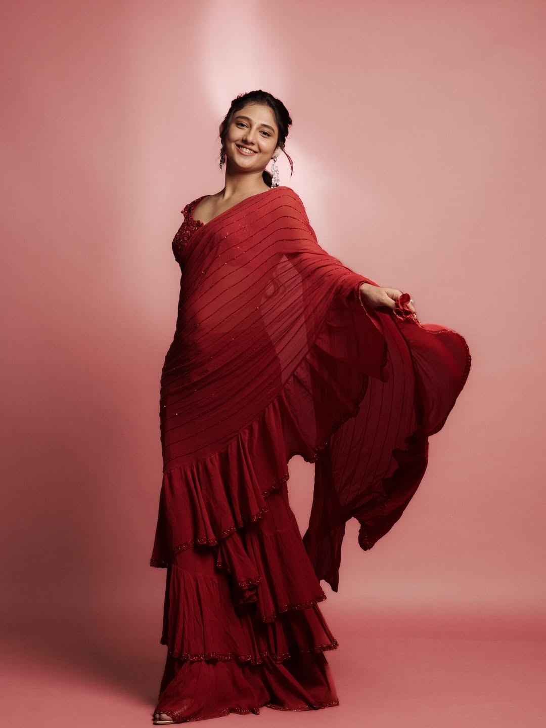 Riding high on the success of her breakout role as Vibha in the fantasy-action film Mirai, Ritika Nayak is not just winning hearts on screen—but setting them ablaze off-screen too! In her latest photoshoot, Ritika quite literally painted the town red, serving a bold, fiery look that fans can’t stop talking about.