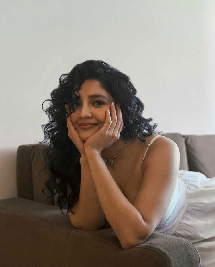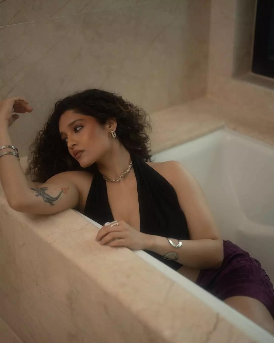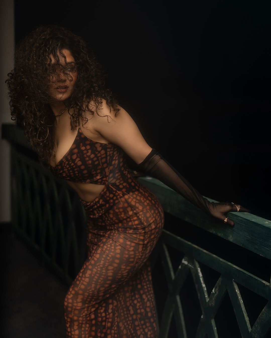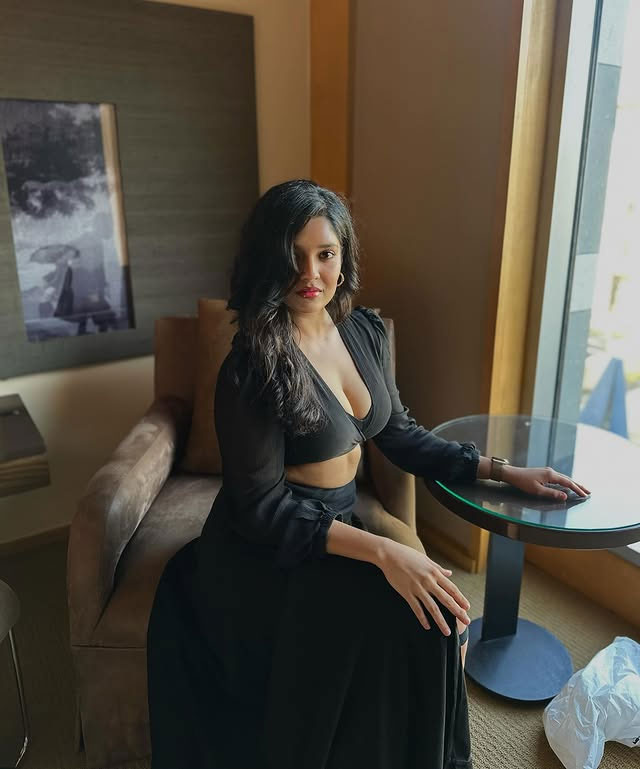 Ritika Singh, the talented Indian actress and former mixed martial artist, recently shared a captivating indoor portrait. Leaning forward with voluminous curly hair cascading around her face, a deep neckline, and a thoughtful gaze resting on her hand, she exuded quiet intensity and effortless sensuality in the warm, softly lit frame.