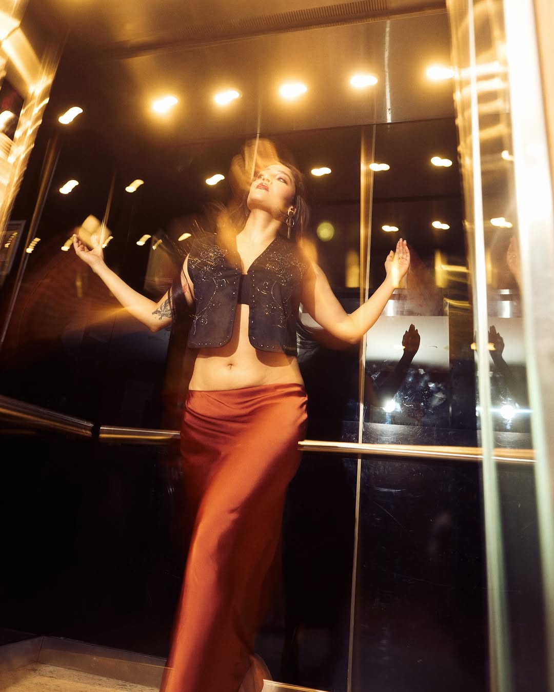 Ritika Singh recently shared a stylish picture on Instagram that caught everyone's attention. In the photo, she is seen wearing a black crop top and red pants. Her caption read: