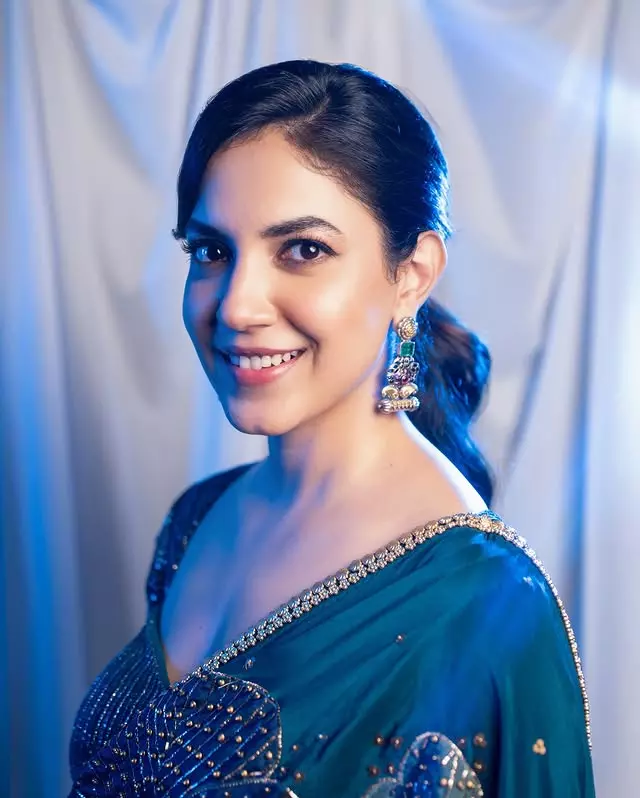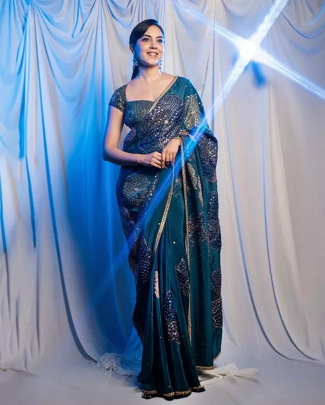Popular actress Ritu Varma shared a beautiful new photo on her Instagram. In the picture, she looks adorable in a sparkling blue saree. She captioned the post, “Saree with a side of sparkle 💙✨🌐,” and her fans loved the look.