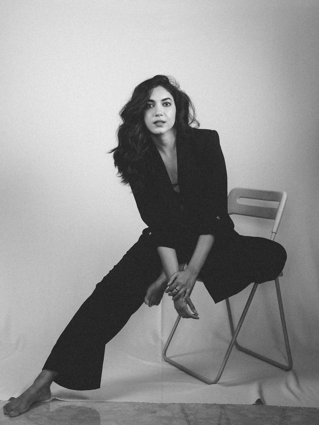 By: Priya Chowdhary Nuthalapti | 18 Sept 2025 3:16 PM ISTPopular actress Ritu Varma recently posted a striking black-and-white picture on Instagram. In the photo she is sitting barefoot on a chair by wearing a smart black suit with minimal accessories.