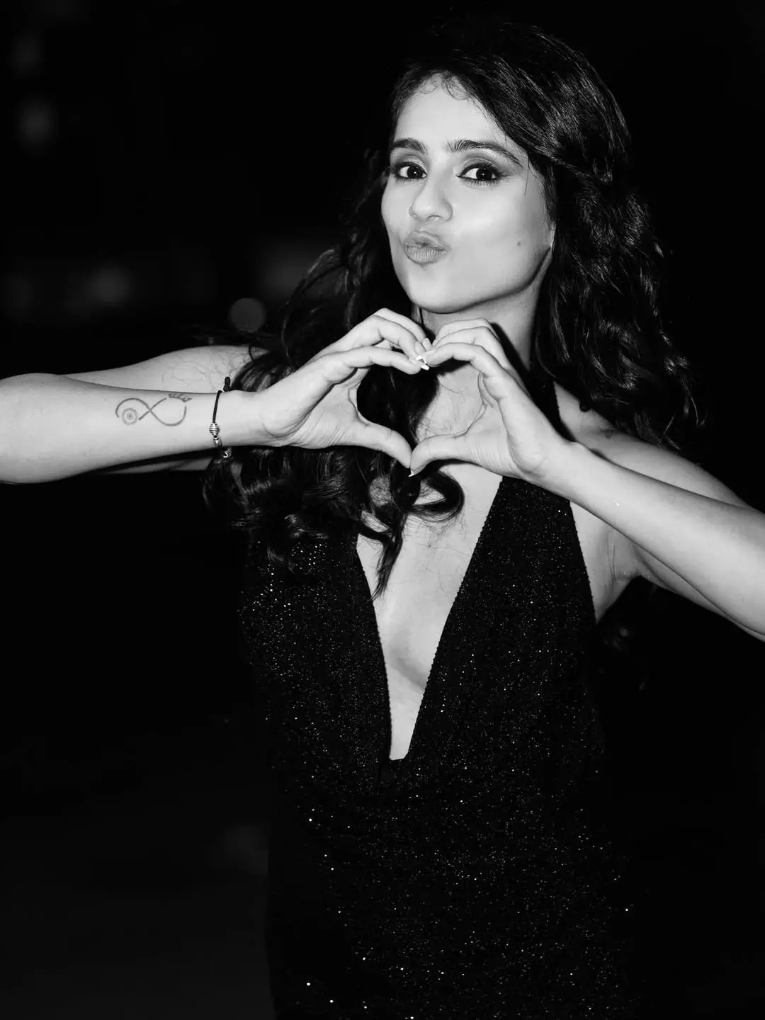 Rose Sardana turns up the heat in this sizzling black sparkly mini dress with a daring low-back design, captured against a moody night backdrop.
