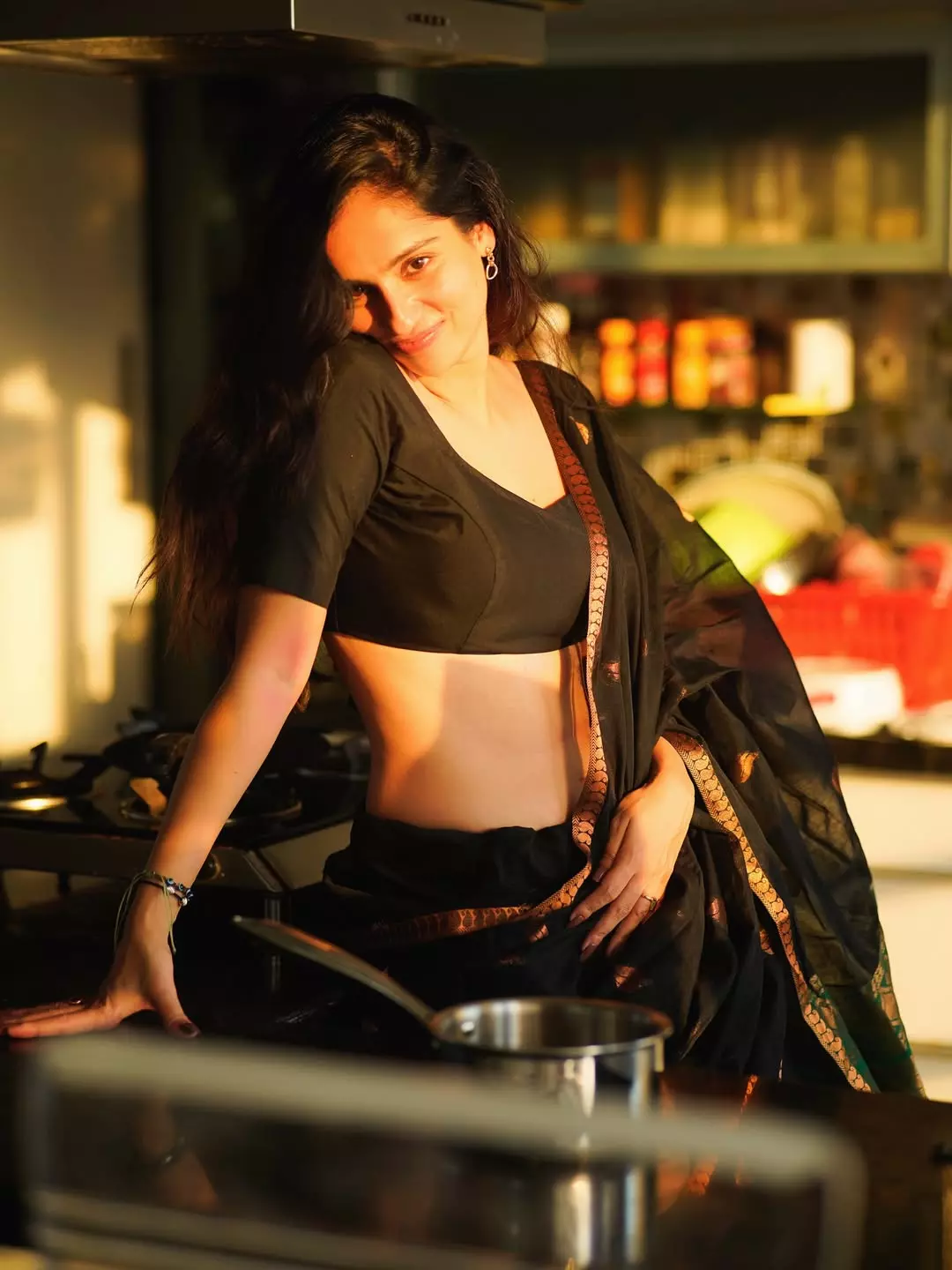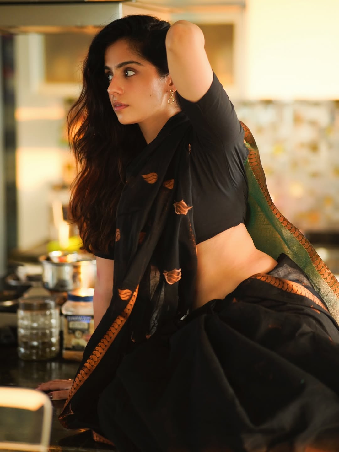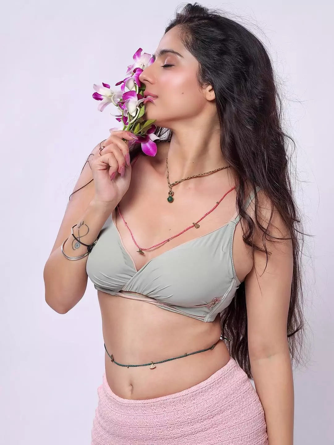 Rose Sardana, born January 8, 1995, in Chandigarh, Punjab, is a talented Indian actress, television presenter, and anchor known for her versatile roles across Bollywood, TV, and Punjabi cinema. With a strong presence on Instagram (@rosesardana08), her photos collection features elegant ethnic ensembles, glamorous shoots, dance performances, and candid moments that showcase her stunning beauty, expressive eyes, and confident charm. This captivating red saree look—paired with a floral hair accessory, intricate blouse, and a book—highlights her graceful, traditional allure and artistic vibe.