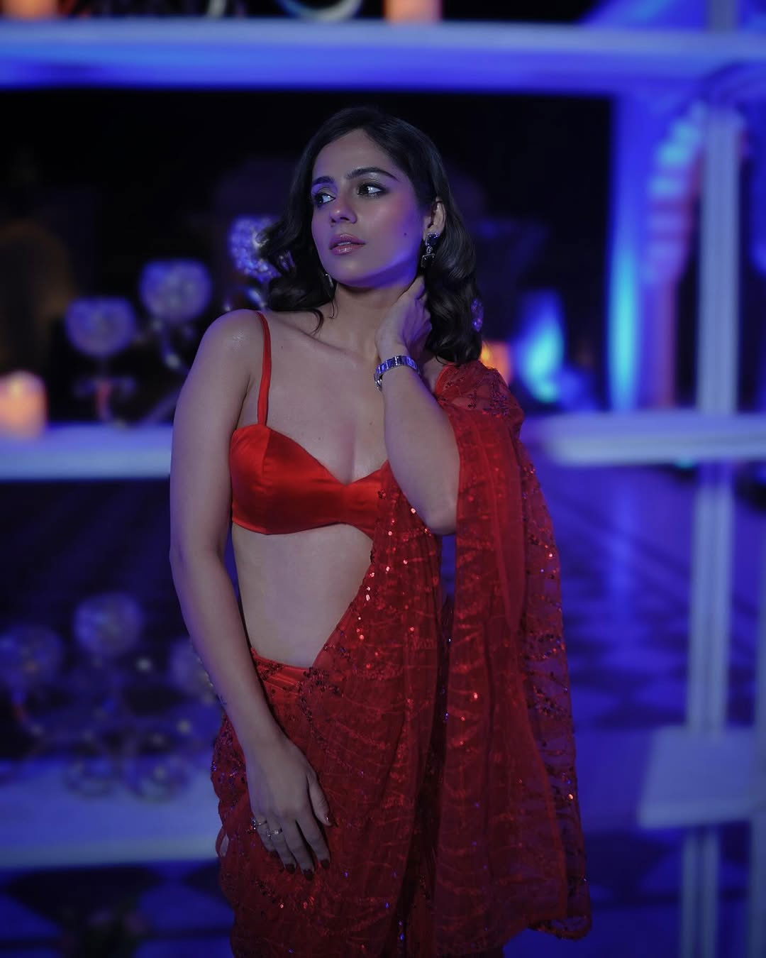 Dressed in a beautiful red saree, Rose exudes elegance and charm in every frame.