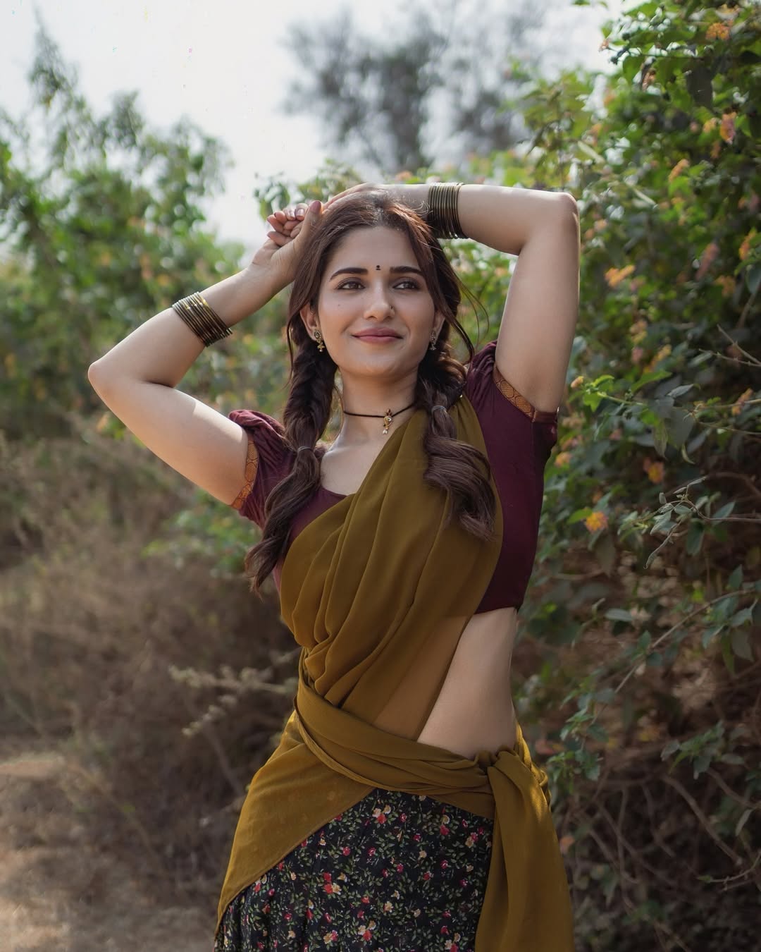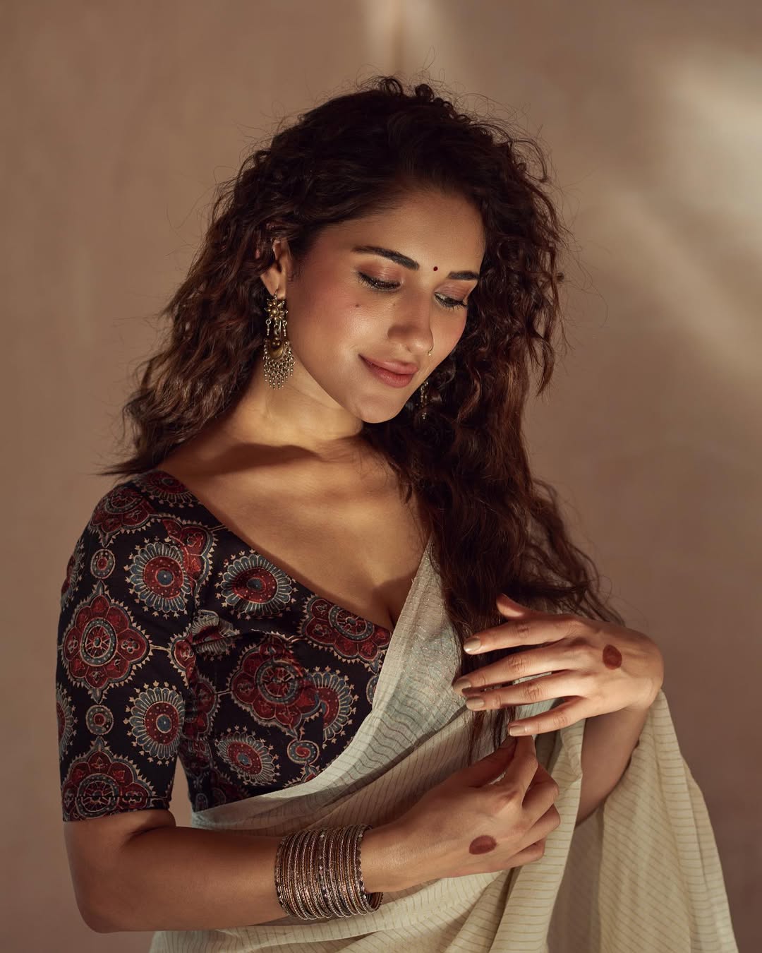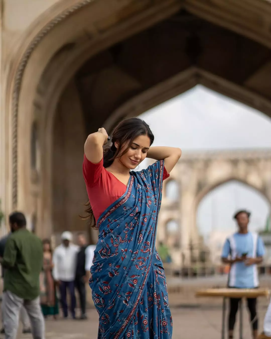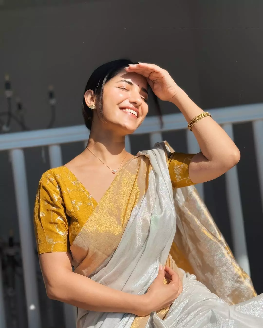 This saree look perfectly mirrors her career a harmonious blend of elegance, confidence, and contemporary flair. Whether on-screen or in fashion moments, Ruhani Sharma continues to inspire with her poise and timeless beauty.