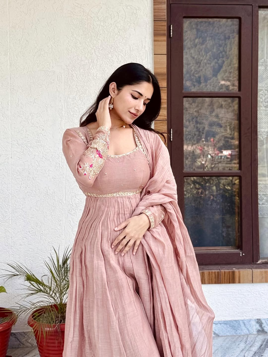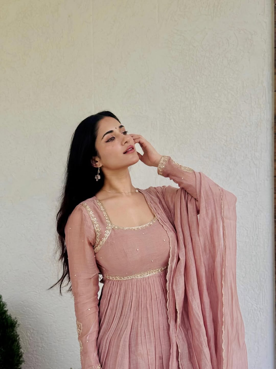 Ruhani’s natural styling — soft, radiant, and unforced — lets the ensemble speak for itself. She doesn't just wear tradition; she embodies it, allowing her presence to feel like a diya’s flame — warm, steady, and full of light.