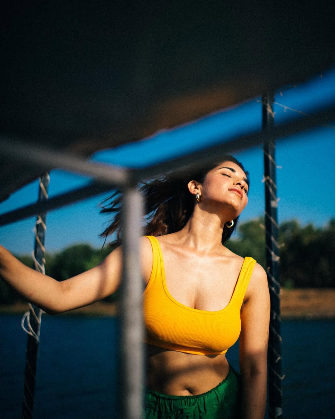 Actress Ruhani Sharma has once again caught everyone’s attention with her latest glamorous photo update, perfectly captioned “Current mood 🍹.” Known for her graceful screen presence and natural beauty, Ruhani looks radiant as she strikes a confident pose filled with charm and elegance. Her fresh look blends modern fashion with effortless sophistication, making the pictures an instant hit among fans on social media.