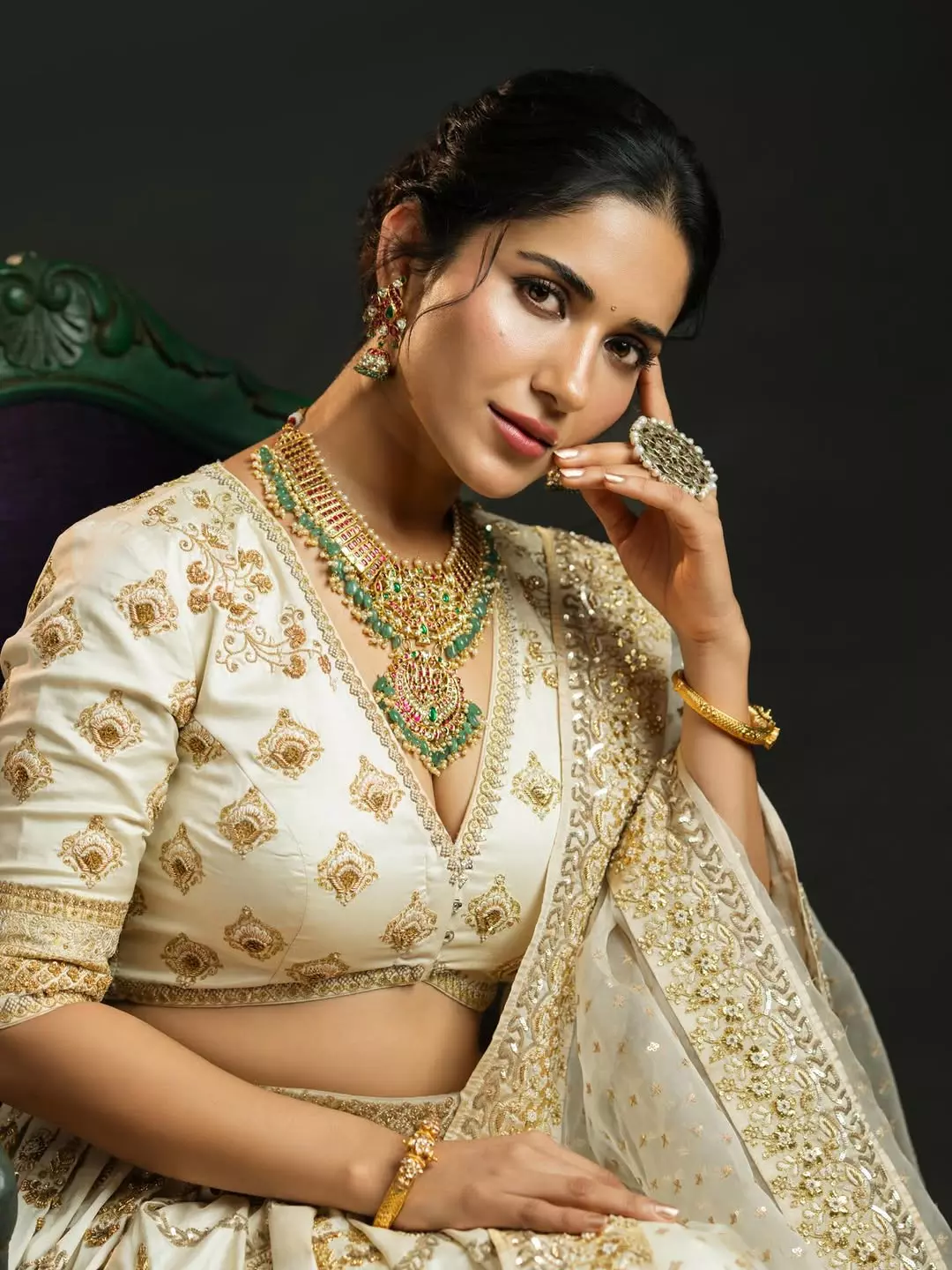 Ruhani Sharma Looks Dreamy in Ivory Bridal Lehenga