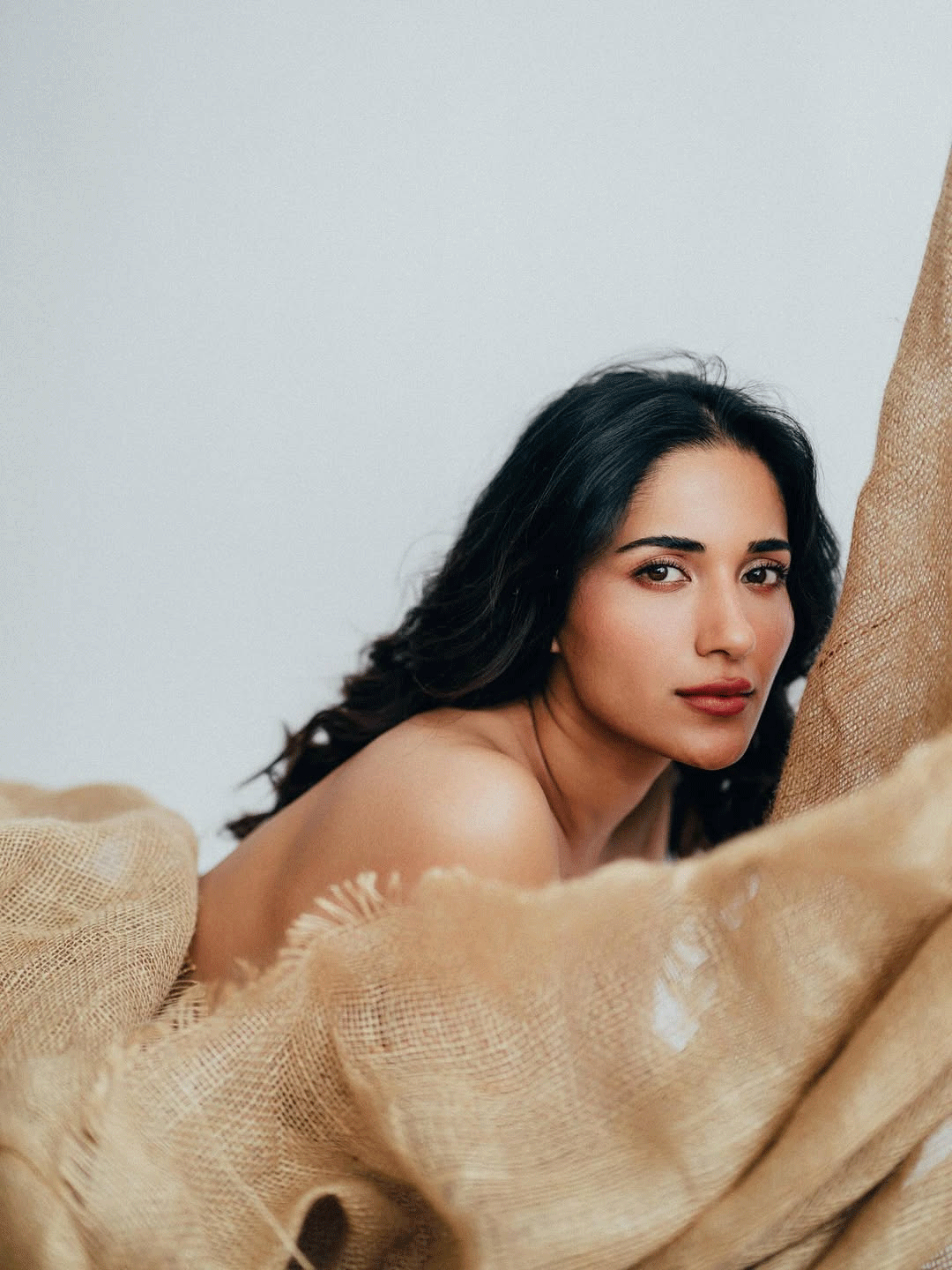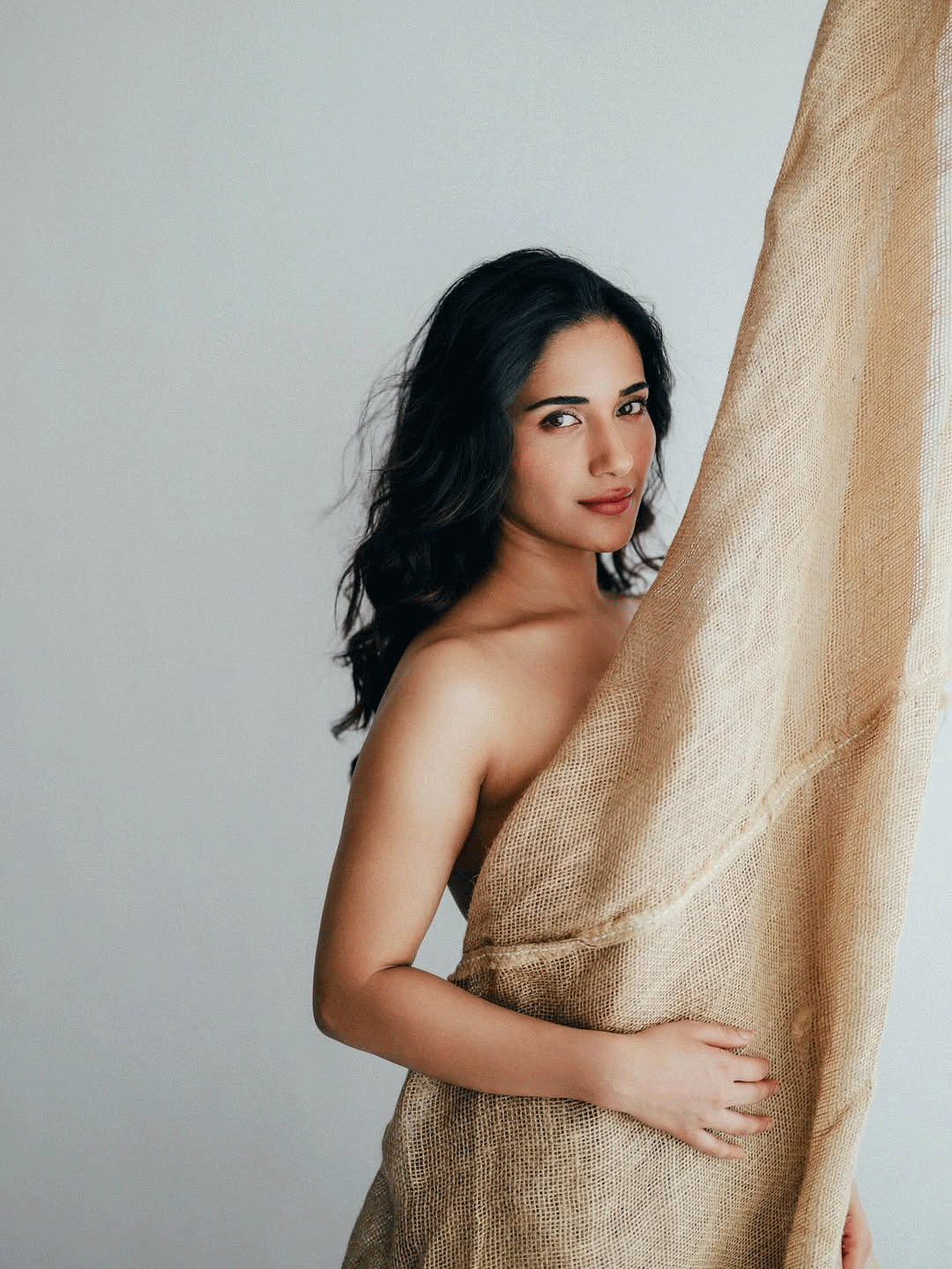 Actress Ruhani Sharma recently shared a photo on her Instagram account that has caught everyone's attention. She is seen wrapped in a soft brown textured fabric. The neutral background and natural look give the photo a classy and artistic vibe.
