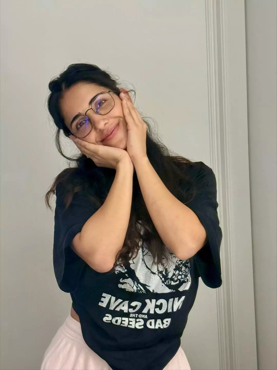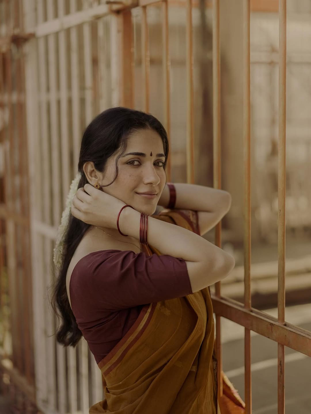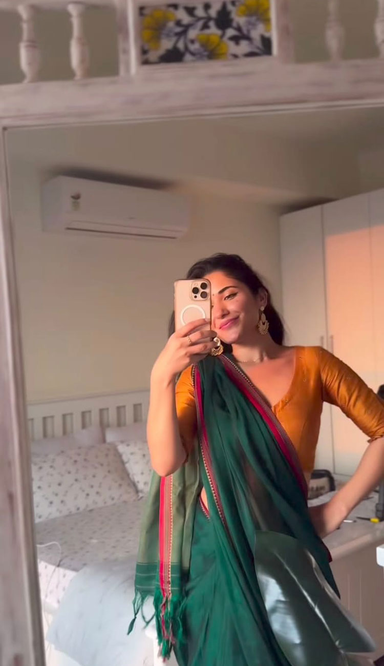 By: Priya Chowdhary Nuthalapti | 13 Oct 2025 10:45 PM ISTActress Ruhani Sharma once again captured hearts with her recent Instagram post, where she looked adorable in a traditional dress. Dressed in a mustard blouse and deep green saree with red borders, Ruhani took a mirror selfie that radiated elegance and warmth. Her caption read, “Your kannumuzhi 👀🙊✨.”