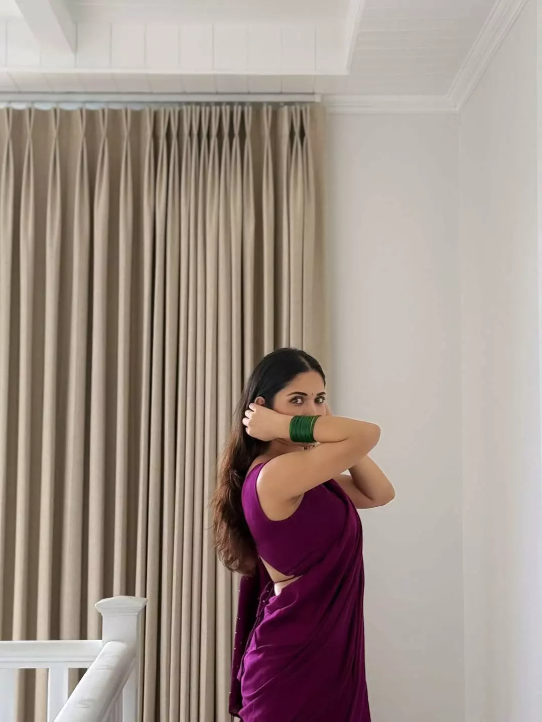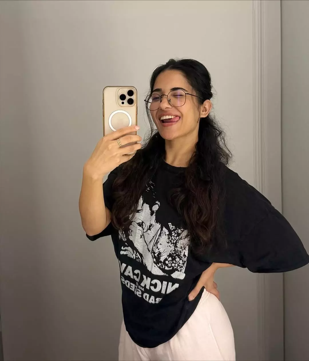 Ruhani took a mirror selfie that radiated elegance and warmth. Her caption read, “Your kannumuzhi 👀🙊✨.”